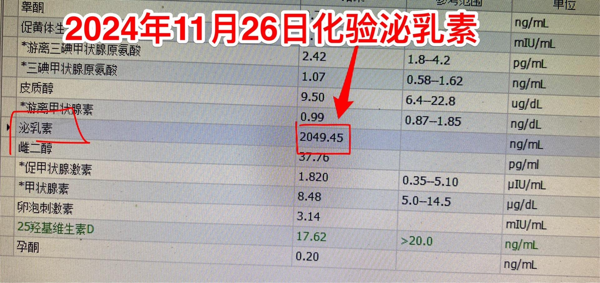 2024年10月25日在我科复查泌乳素,显示泌乳素水平远远