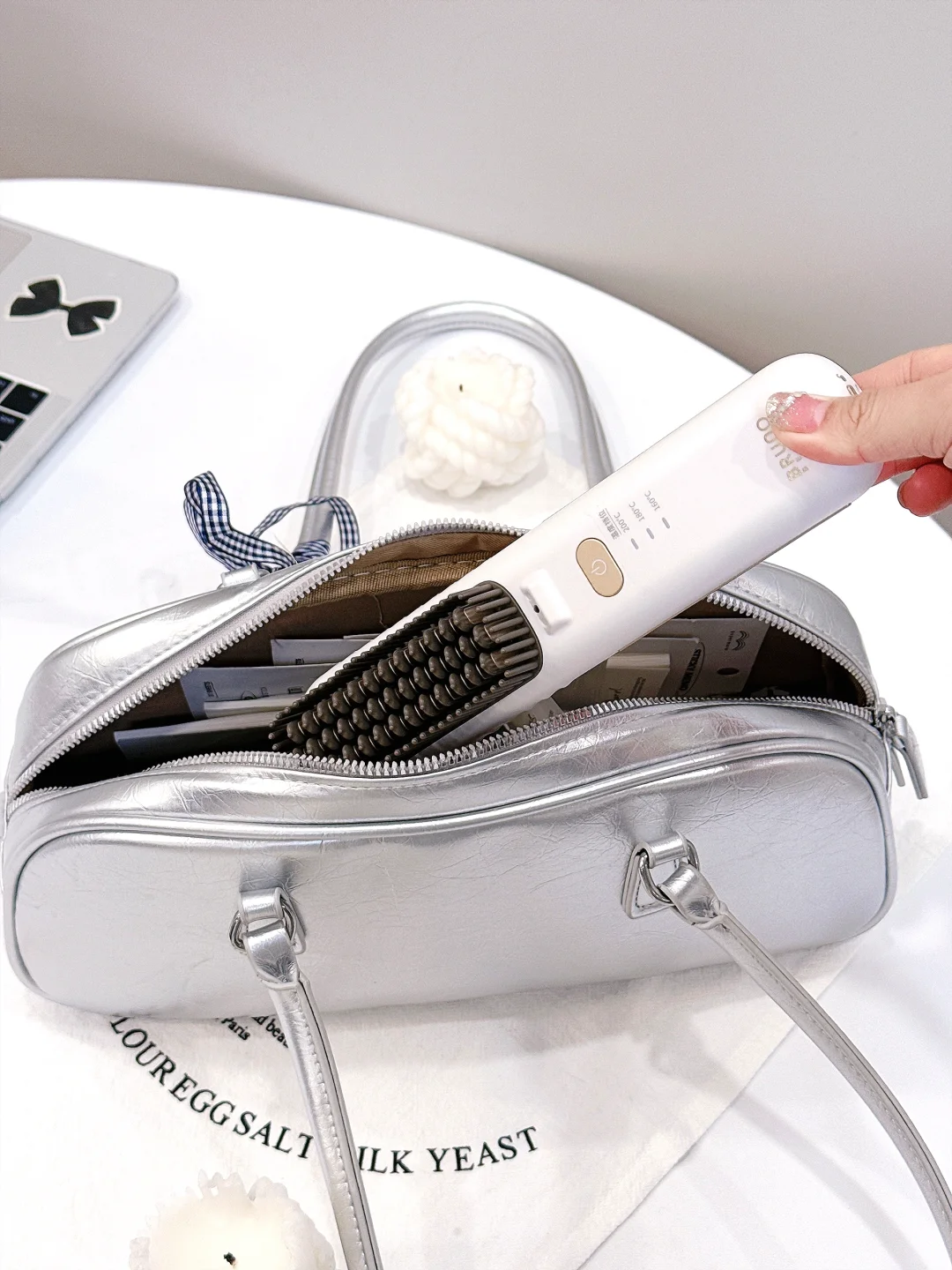谁懂头发打结的痛苦😖 直到我遇到这款BRUNO 直发梳! 很神奇的梳完头发真的柔顺很多🧚🏻♀️ 而且它的齿轮⚙️设计很棒👍 弧形深齿轮的,能很好的贴合头型👌 摩洛哥坚果精油梳齿外加2亿负离子! 梳理头发的同时还能滋养发丝! 一共三个档位调节温度,可以根据自己适合的温度来调节! 喜欢高颅顶,头发柔顺的姐妹有救喽✌️ 小巧便携,放包里随身携带!