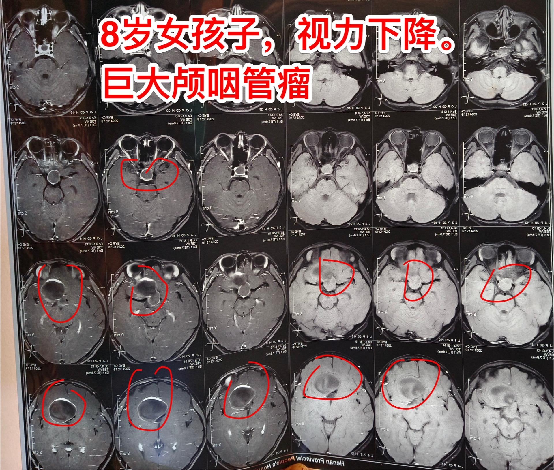 巨大颅咽管瘤-8岁女孩子,今天住院了。河南省许昌市女孩子,8岁,视力下...