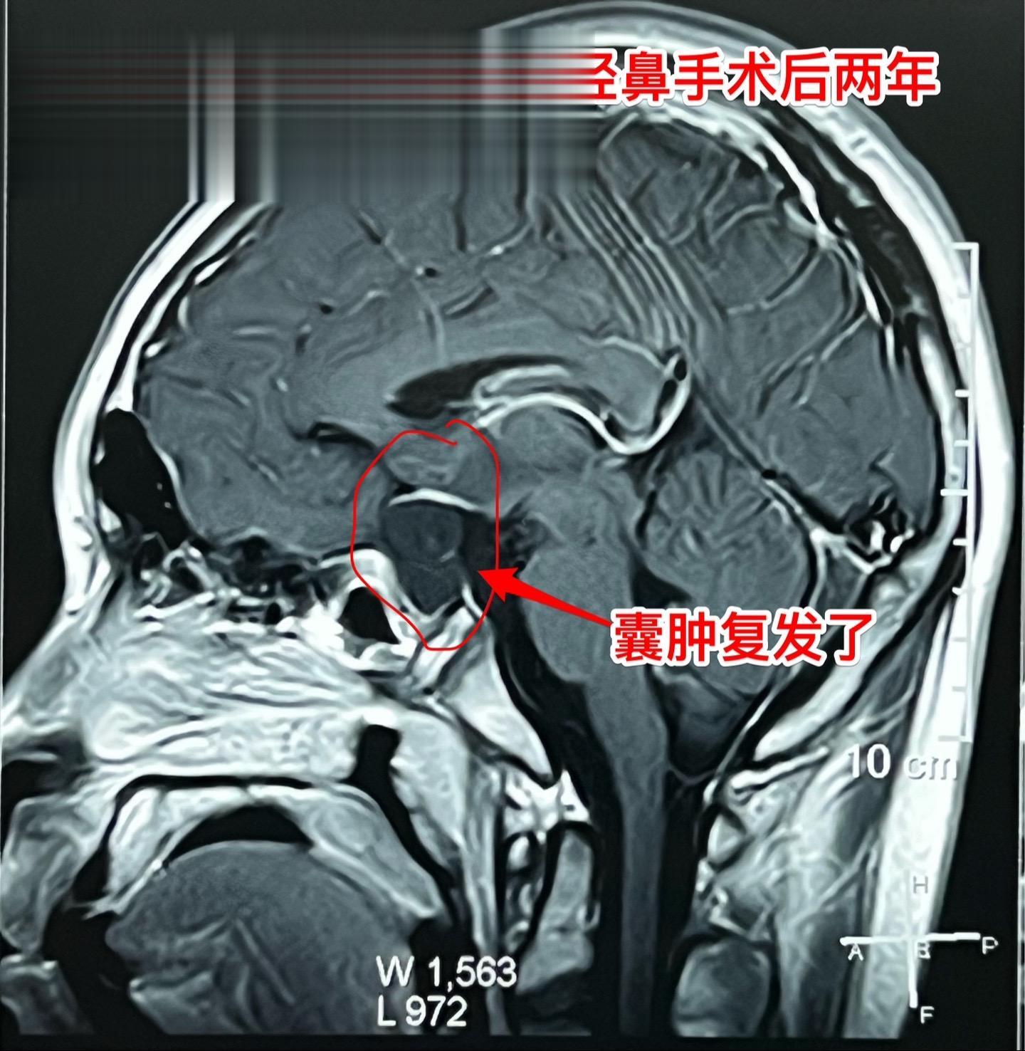 他们一家选择了一个著名的医院去作手术,采用经鼻手术方式。遗憾的是手术中取得的标本最终未得出确切的病理诊断。手术后小孩子还出现了脑脊液鼻漏、颅内感染,受老罪了。