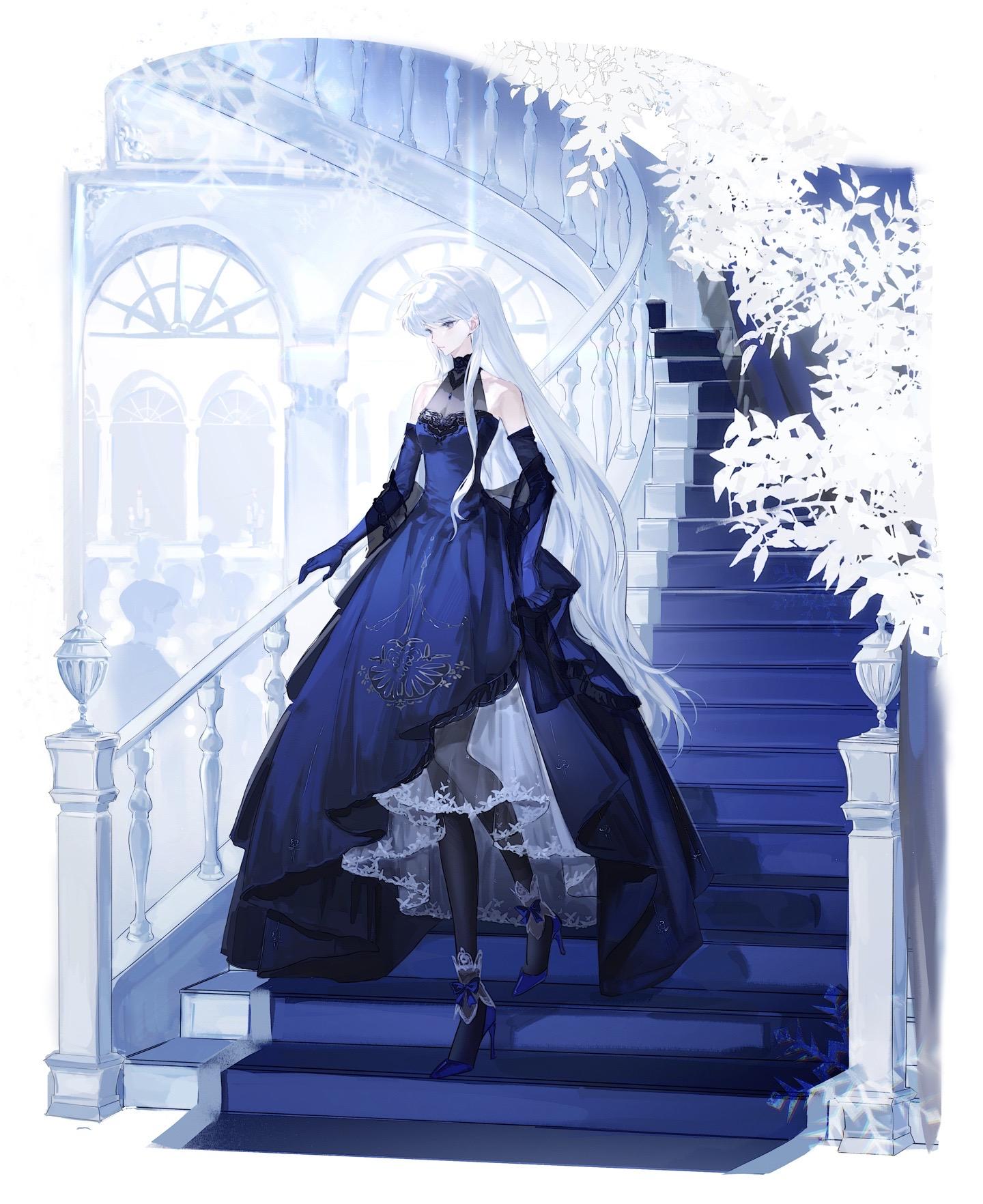 为避免引人瞩目隐去容貌,从一旁的侧梯走了下来。
