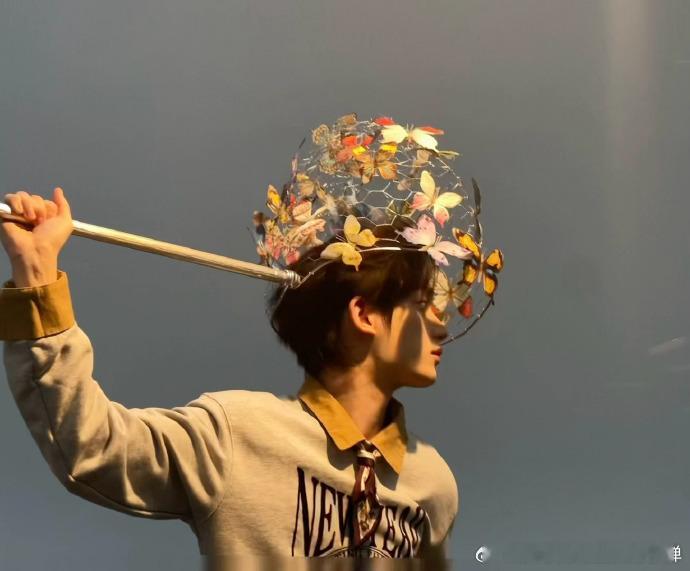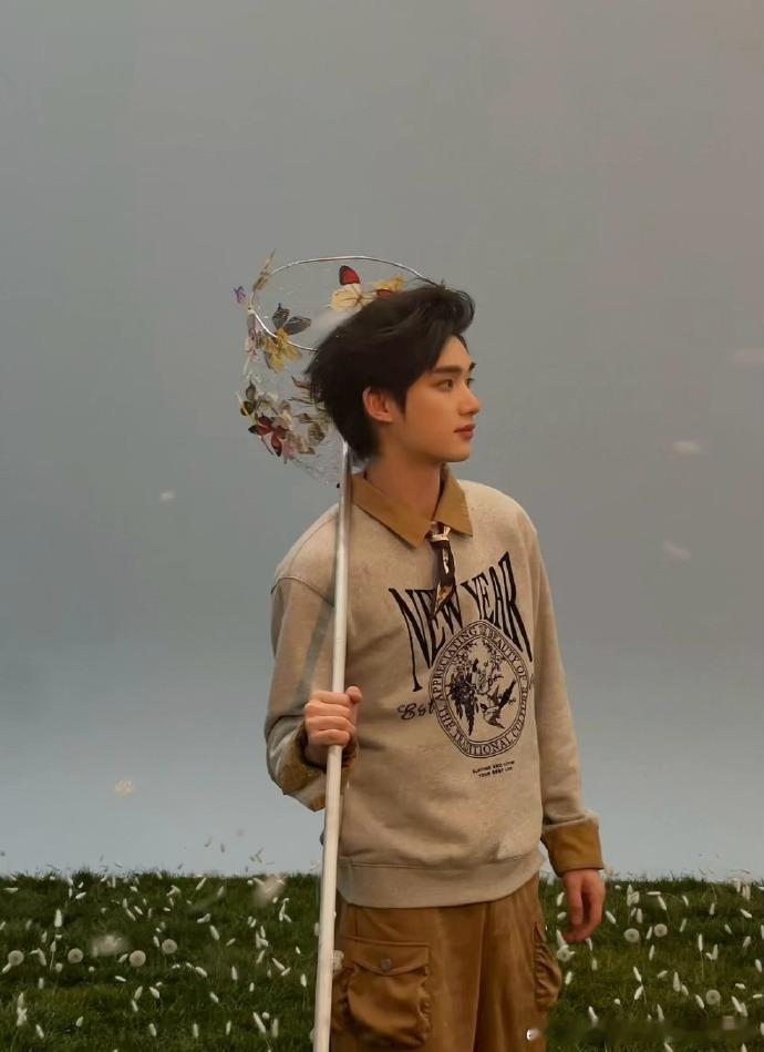 丁程鑫扛捕蝶网丁程鑫双手比耶拍立得家人们,丁程鑫扛捕蝶网的样子真的好绝,