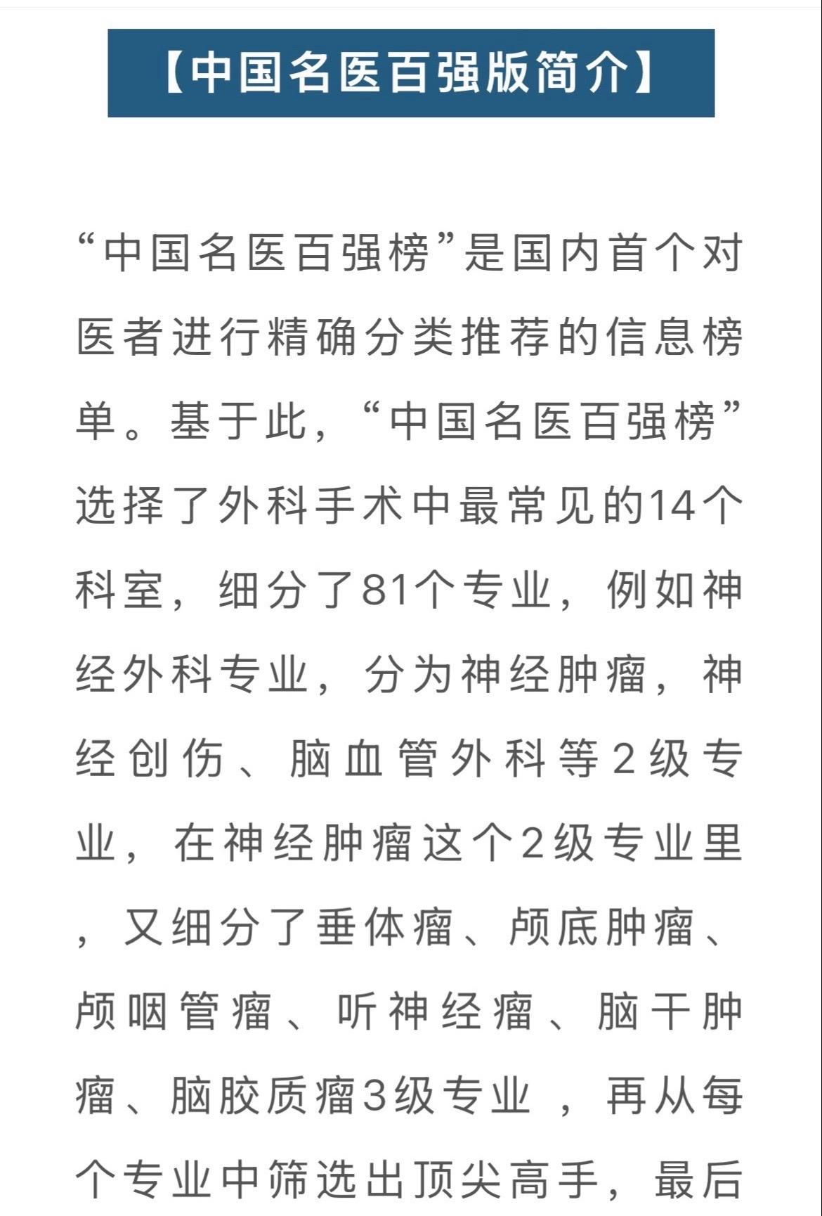 中国名医百强榜之:颅咽管瘤。医生的本职工作就是治病!