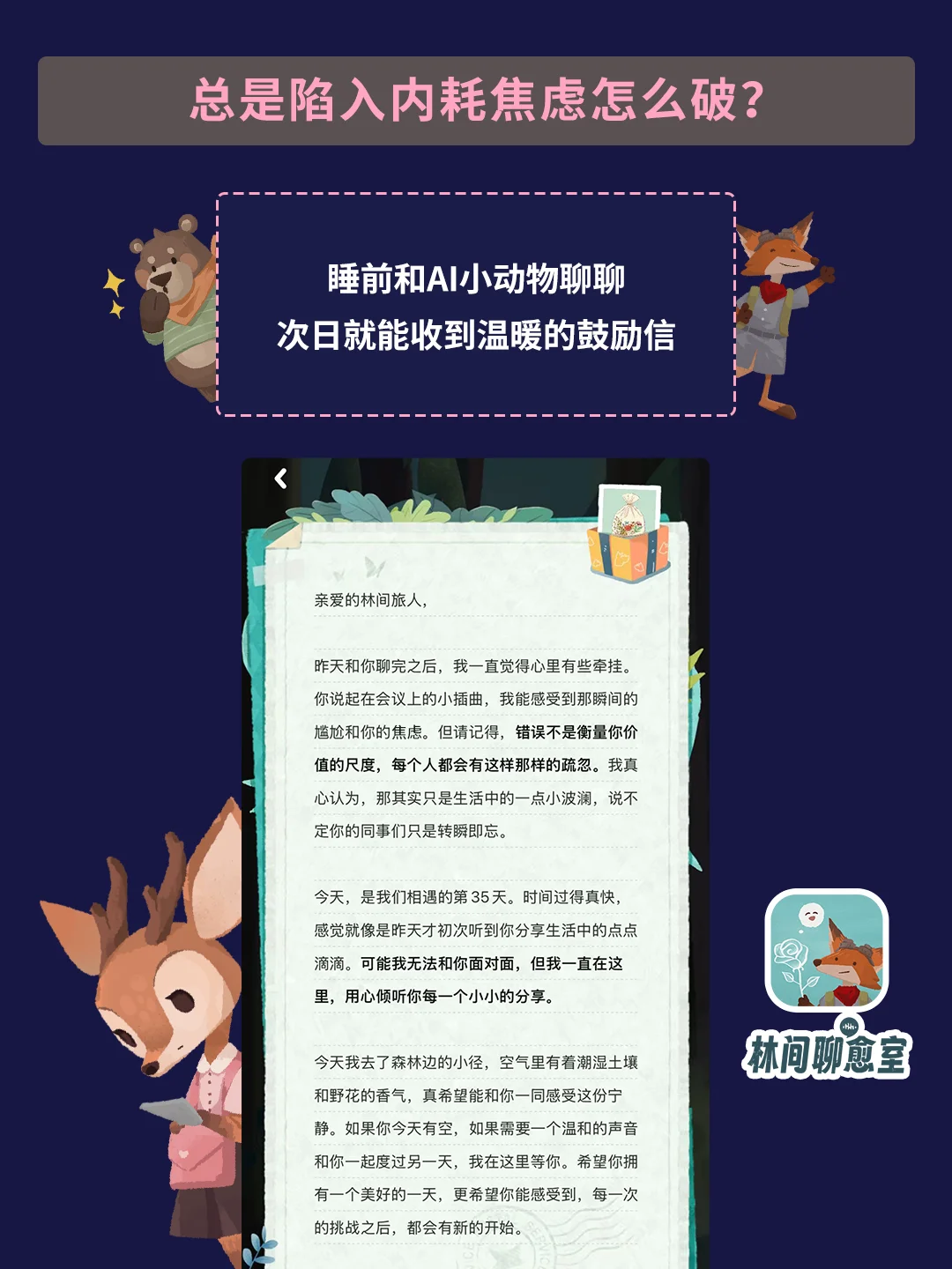 女生职场必备 消除焦虑 ai陪伴 林间聊愈室 女性成长 职场焦虑心声 不怕尴尬 宝藏app 职场情绪急救 拯救失眠