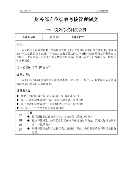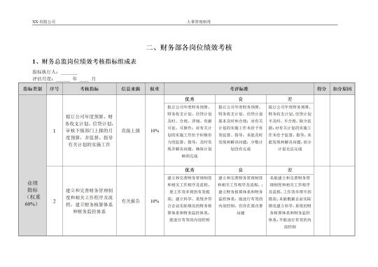 财务各岗位绩效管理办法