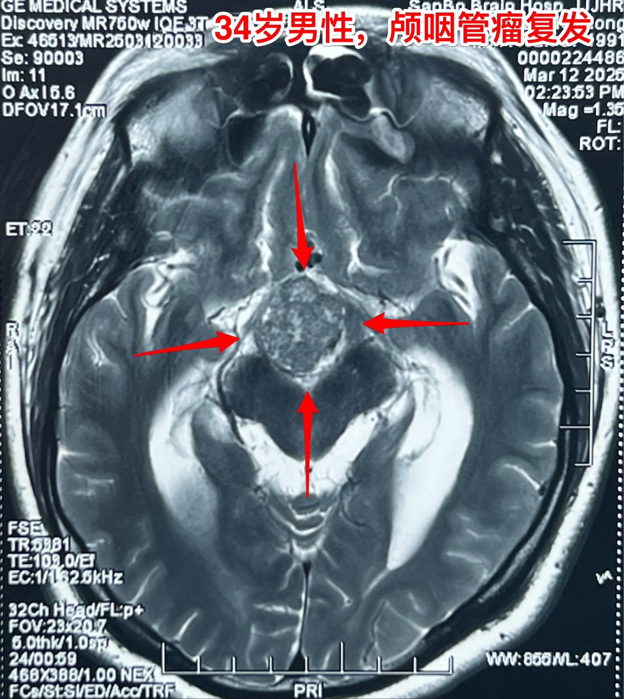 乳头型和造釉型颅咽管瘤的混合型存在吗?34岁男性,广东省惠州市人。一年前因视力下降发现颅咽管瘤,在广东省某医院行开颅手术切除一部分肿瘤。肿瘤复发了来三博脑科医院找我治疗。