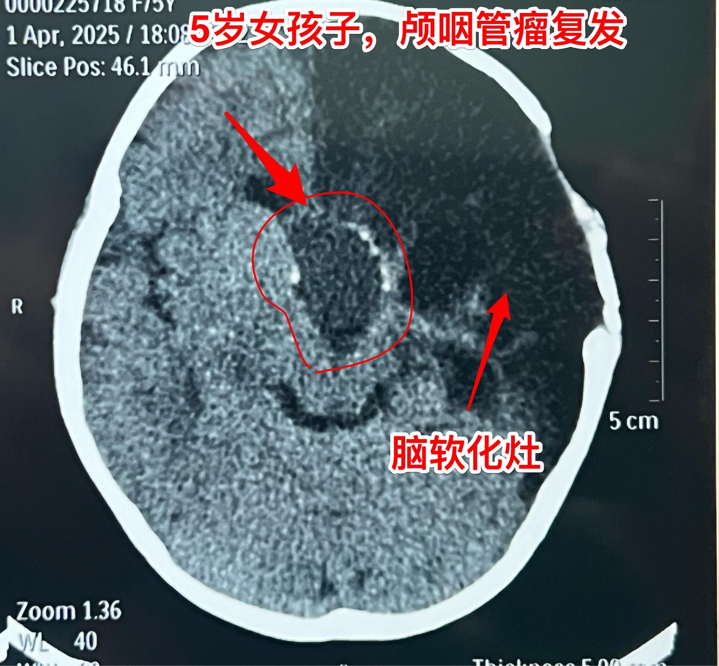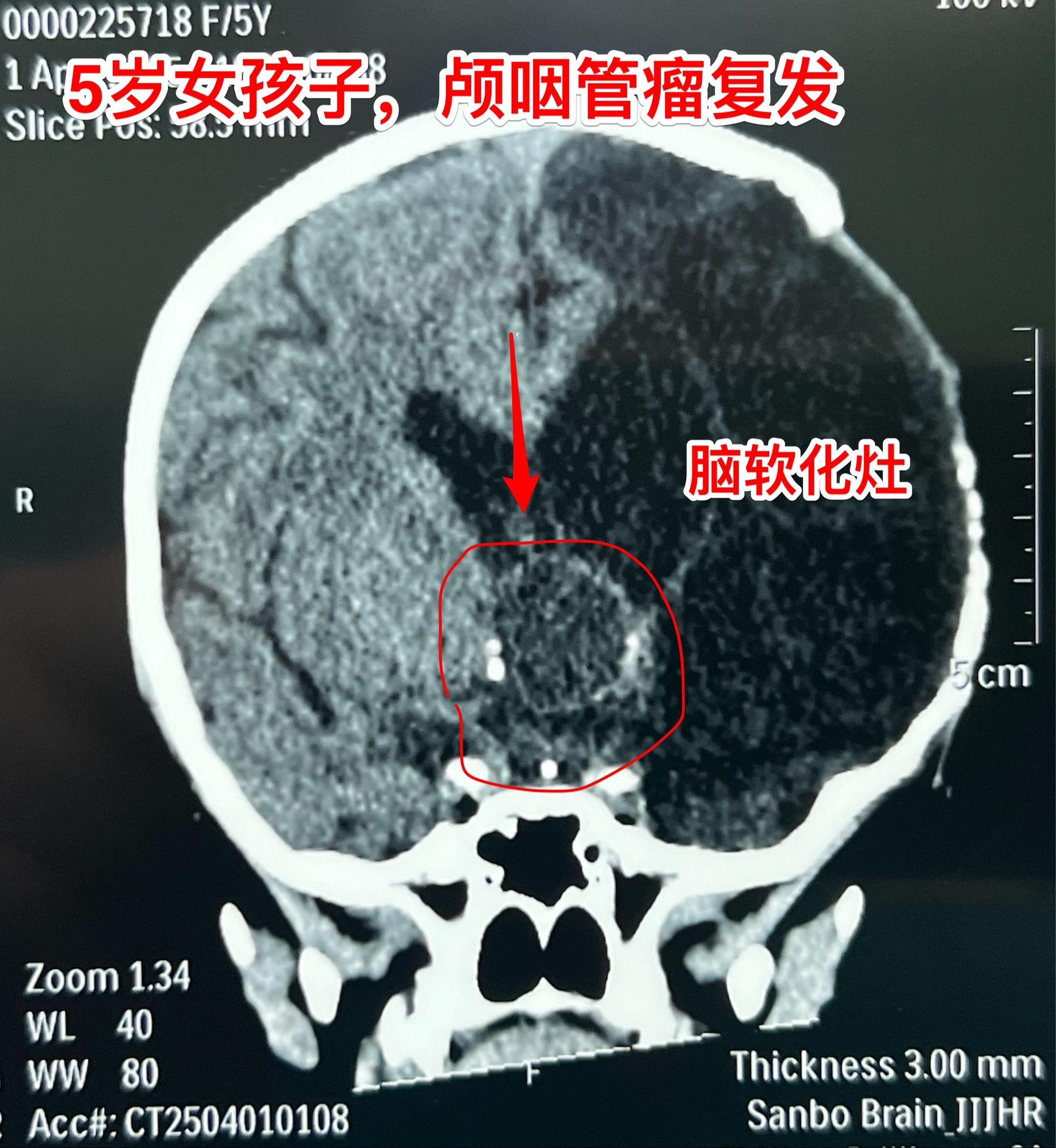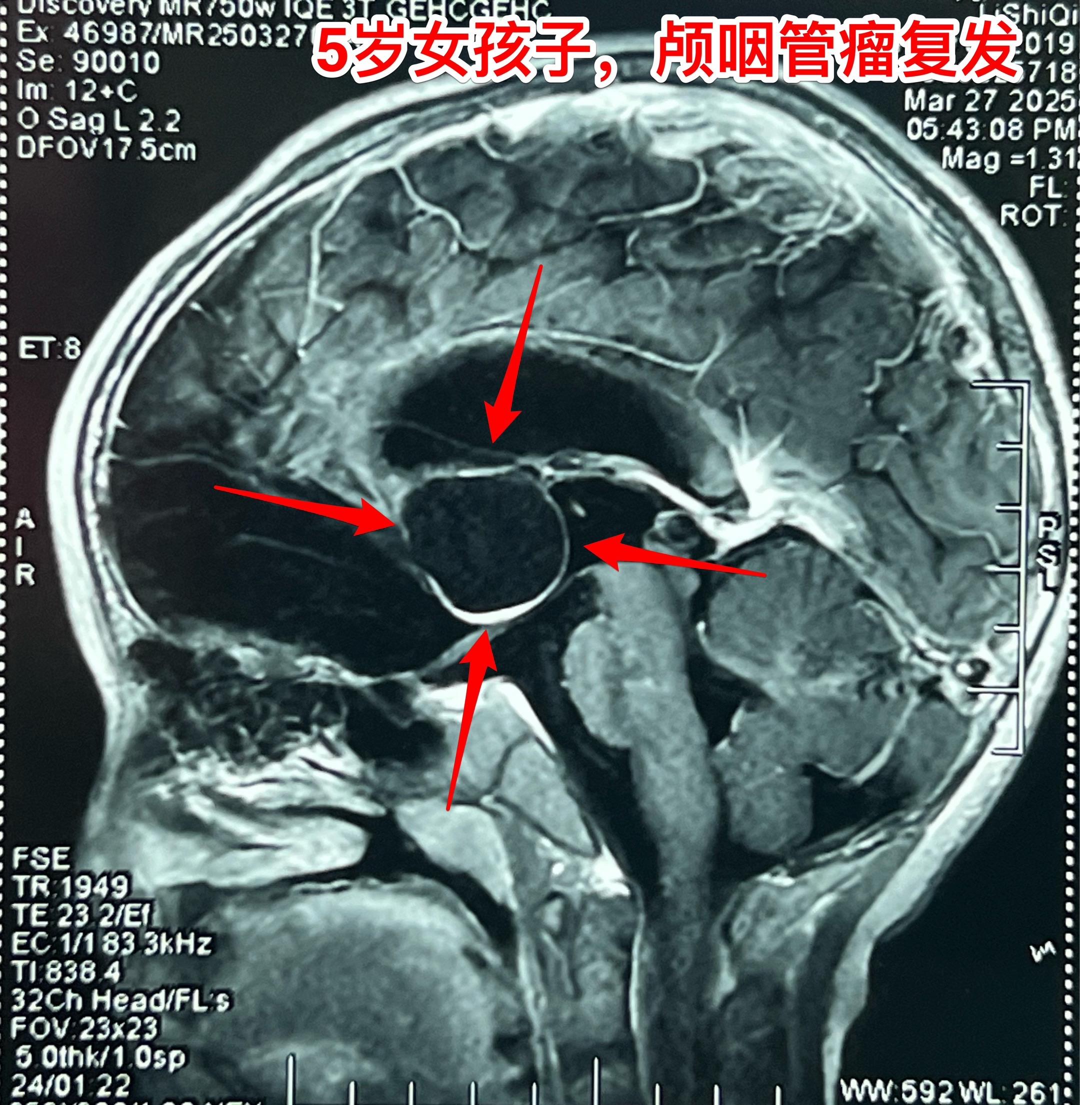 5岁湖北女孩子,第二次颅咽管瘤手术。外院第一次手术后出现左侧大脑半球的...