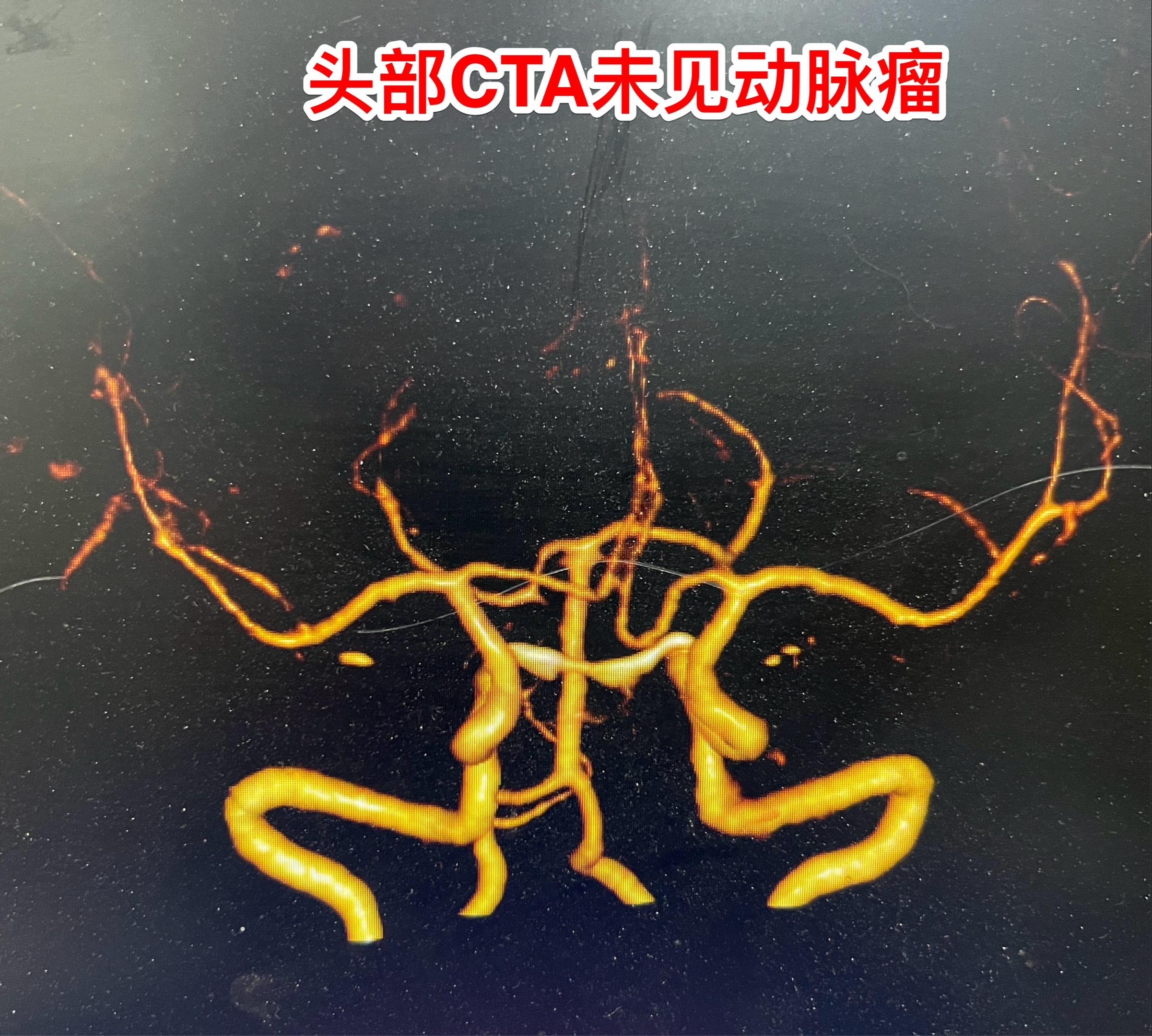 病人找我看病后就住院了。按照蛛网膜下腔出血作CTA排查脑动脉瘤,结果没有发现脑部动脉瘤。