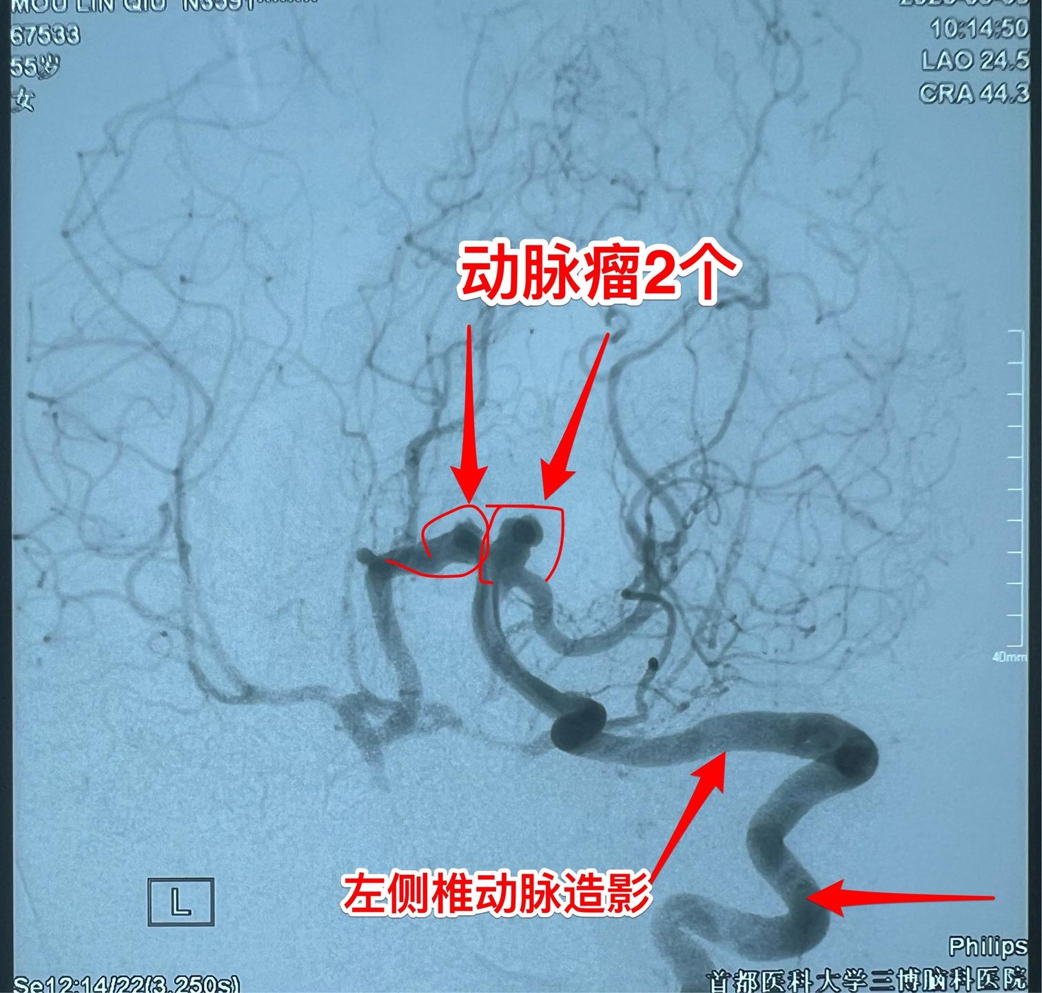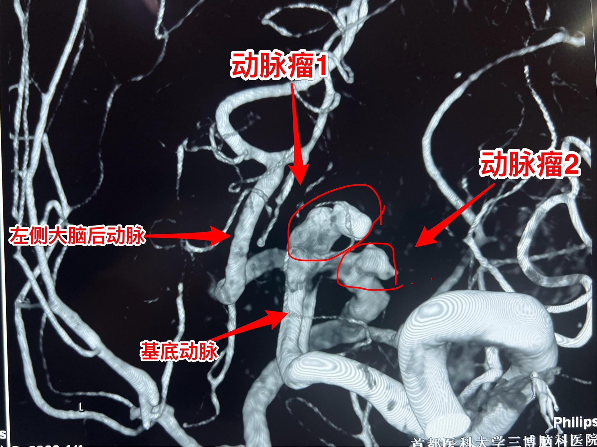 在烟雾病基础上合并后循环的动脉瘤。55岁佳木斯市女性,近三个月在北京生...