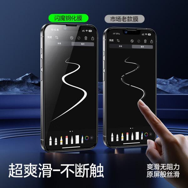 这款闪魔苹果13钢化膜,高清防爆防摔,抗指纹效果好,贴膜简单不起泡,2片装超值!