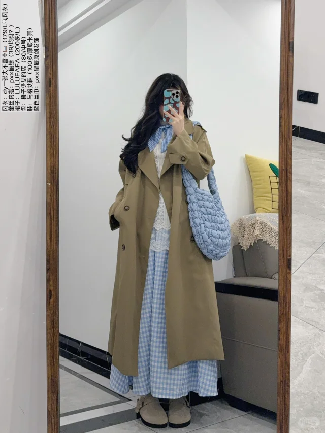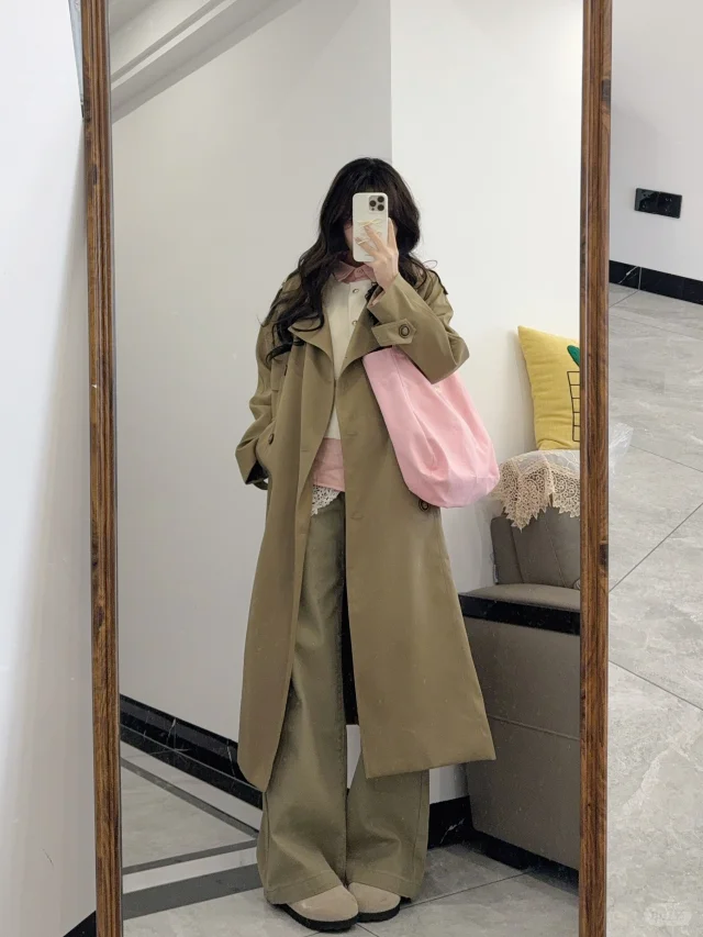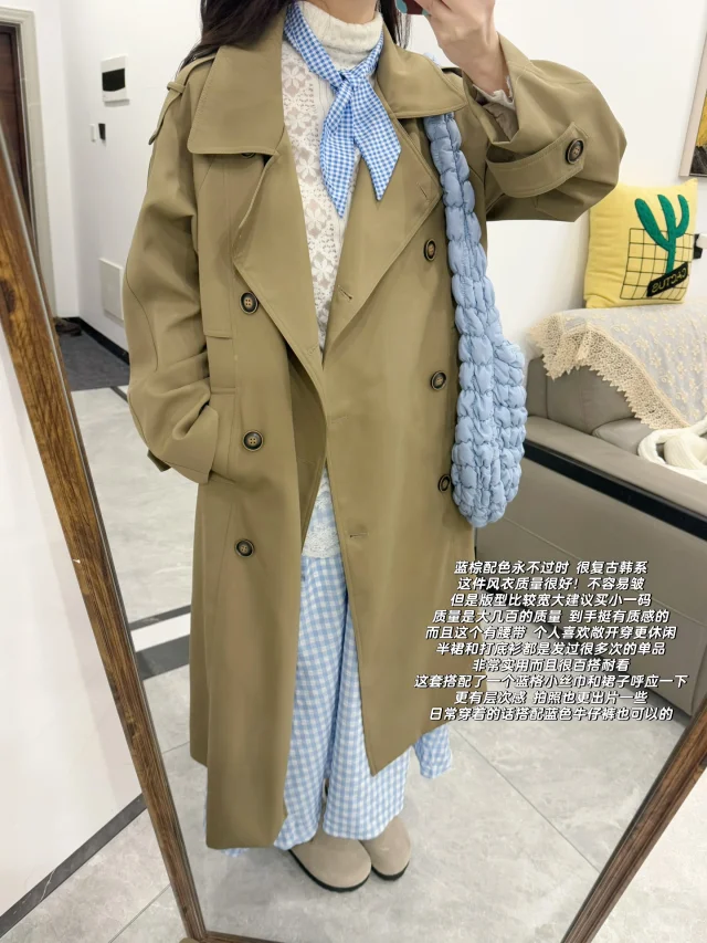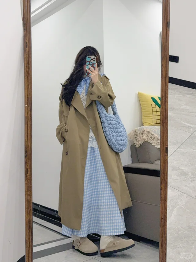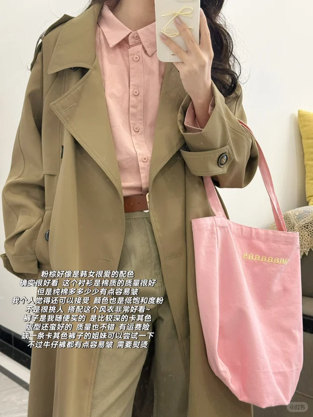Pink&Blue🧺卡其色风衣春日韩系穿搭思路~