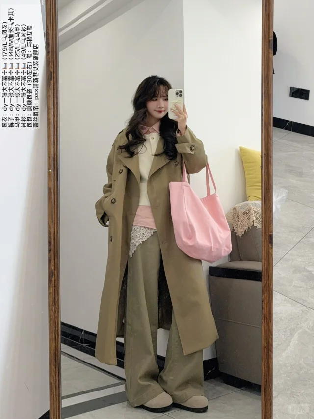168/107左右 【仅提供穿搭思路 理性种草~】 前段时间买了件风衣 先给大家出点搭配 卡其色风衣的搭配思路还是蛮多的 这一期主要是比较日常休闲韩系的感觉 (也穿插了一点点成熟的~) 卡其色搭配白色/粉色蓝色/黑色是比较好看的 对于这种比较宽松的长款风衣 可以内搭搭配:白色蓝色粉色的衬衫/开衫 搭配黑色/蓝色/棕色牛仔裤/西装裤/拖地裤 或者尝试短裙➕骑士靴的露腿穿搭~
