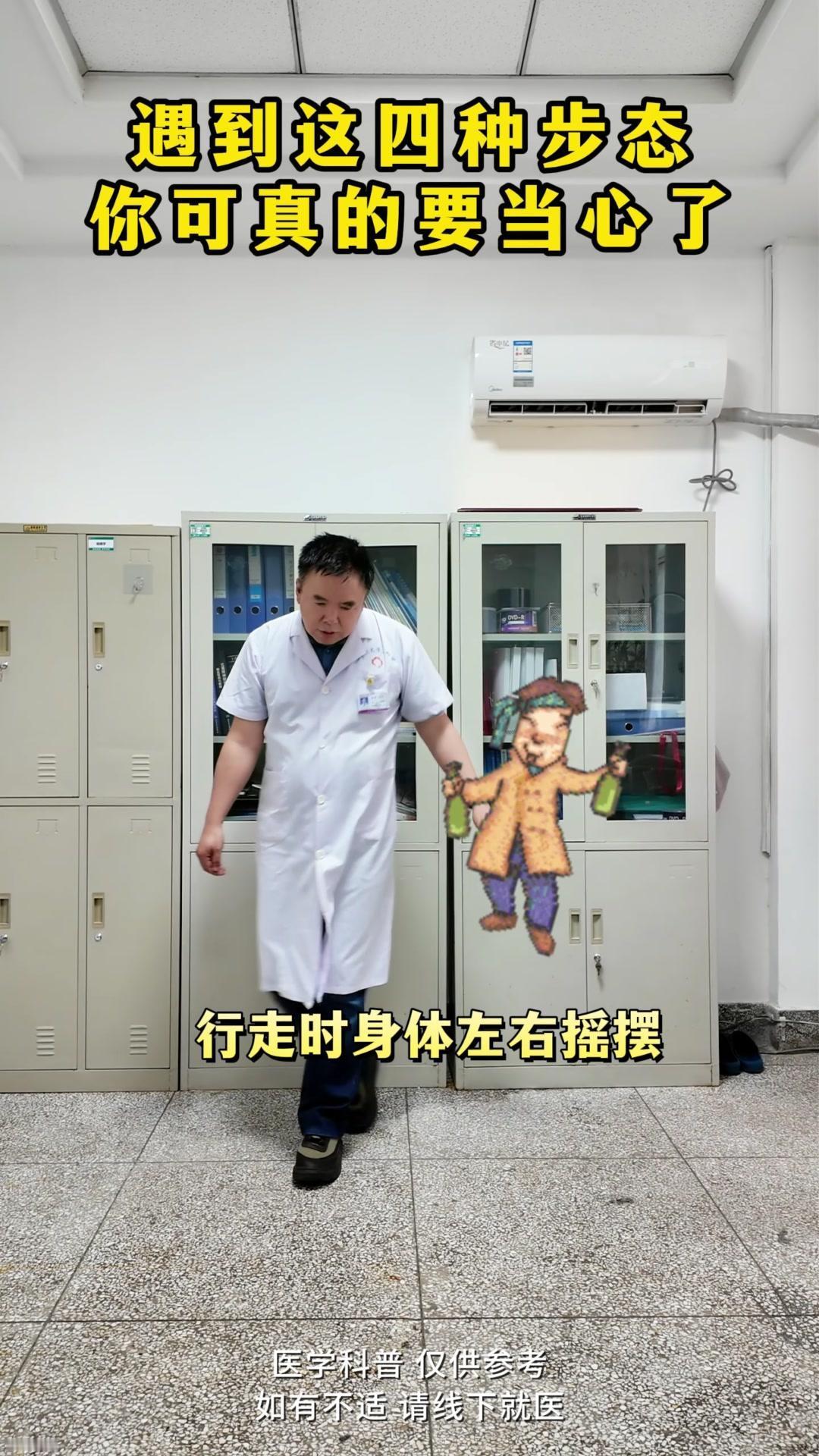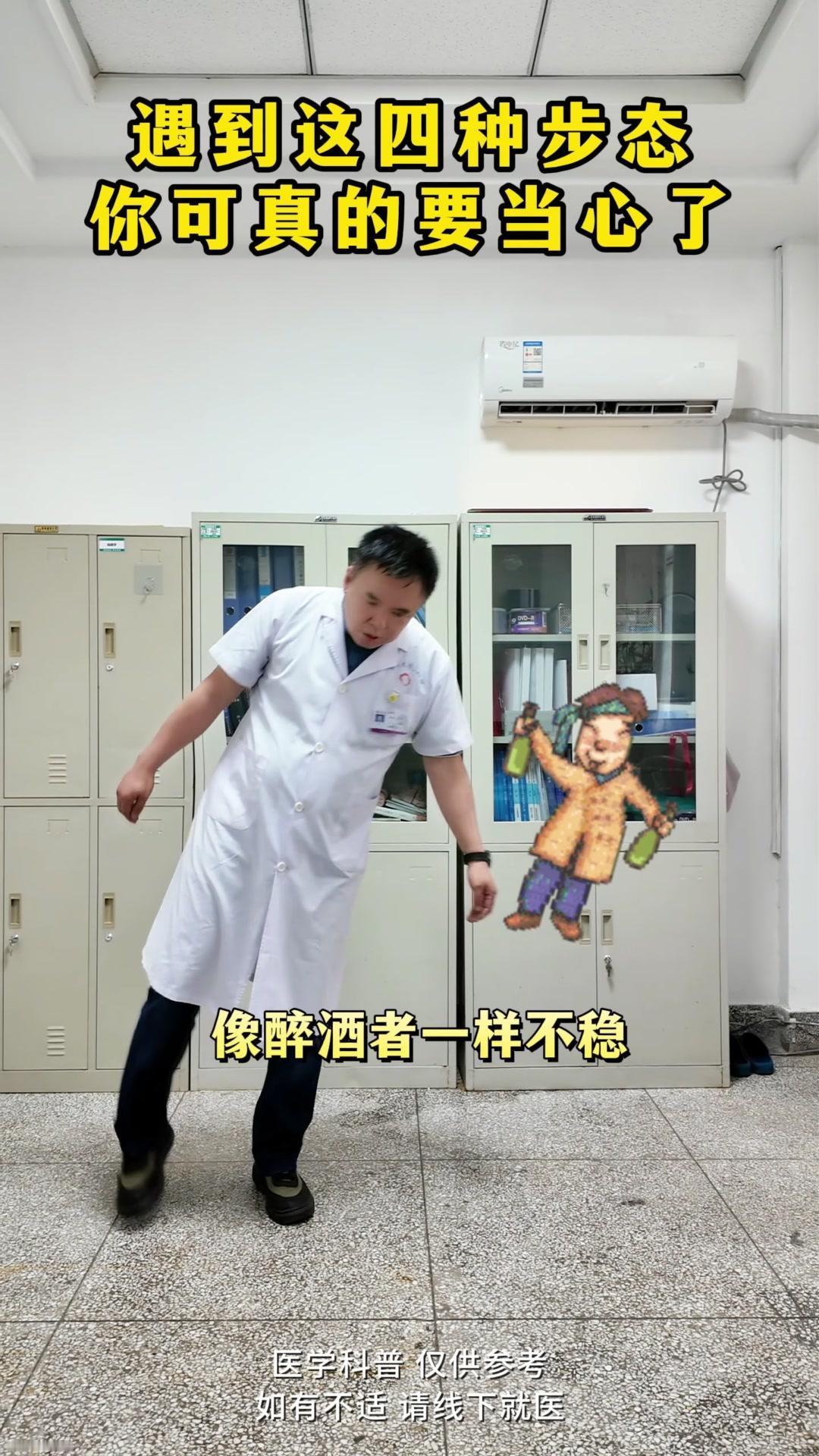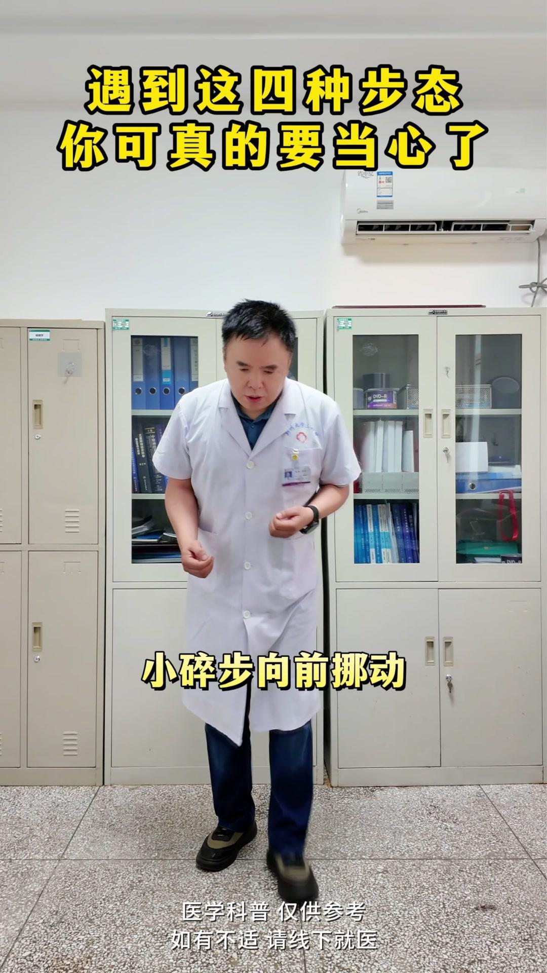 1️⃣小碎步:行走时身体左右摇摆,像醉酒者一样不稳,常见小脑病变或酒精中毒。 2️⃣帕金森小碎步:身体紧张,行走时困难缓慢,是帕金森患者典型症状之一。 3️⃣交叉踮脚步:双腿交叉呈不稳,踮脚移动,多见于脑性瘫痪。 4️⃣超四步:行走时一脚向前跨步,另一只脚跟从手指,呈兰花状,脖子歪斜,多见于脑梗脑卒中。