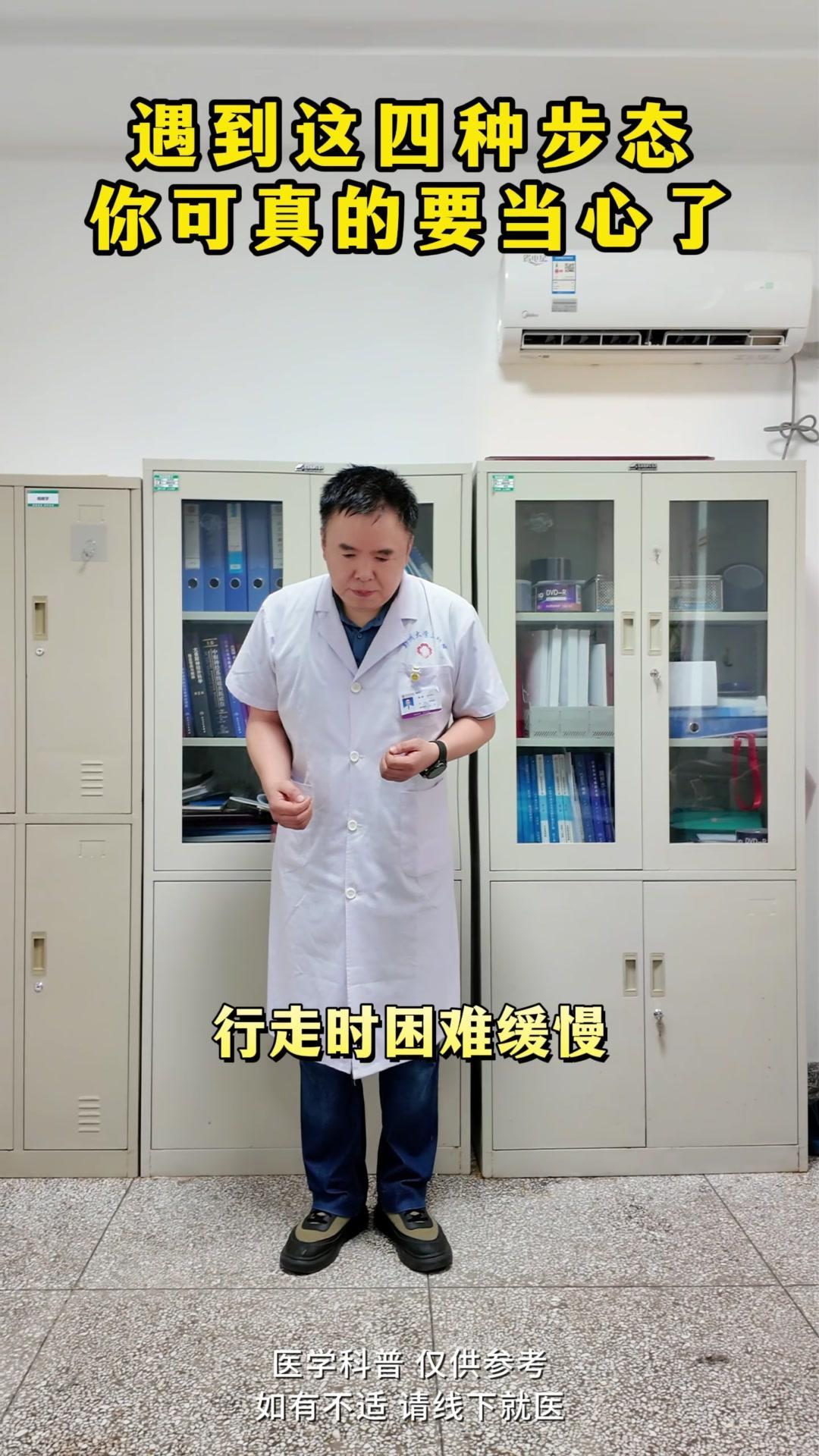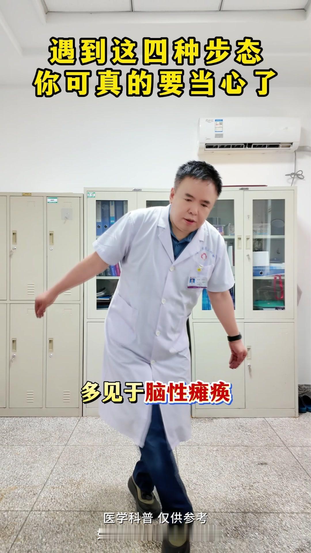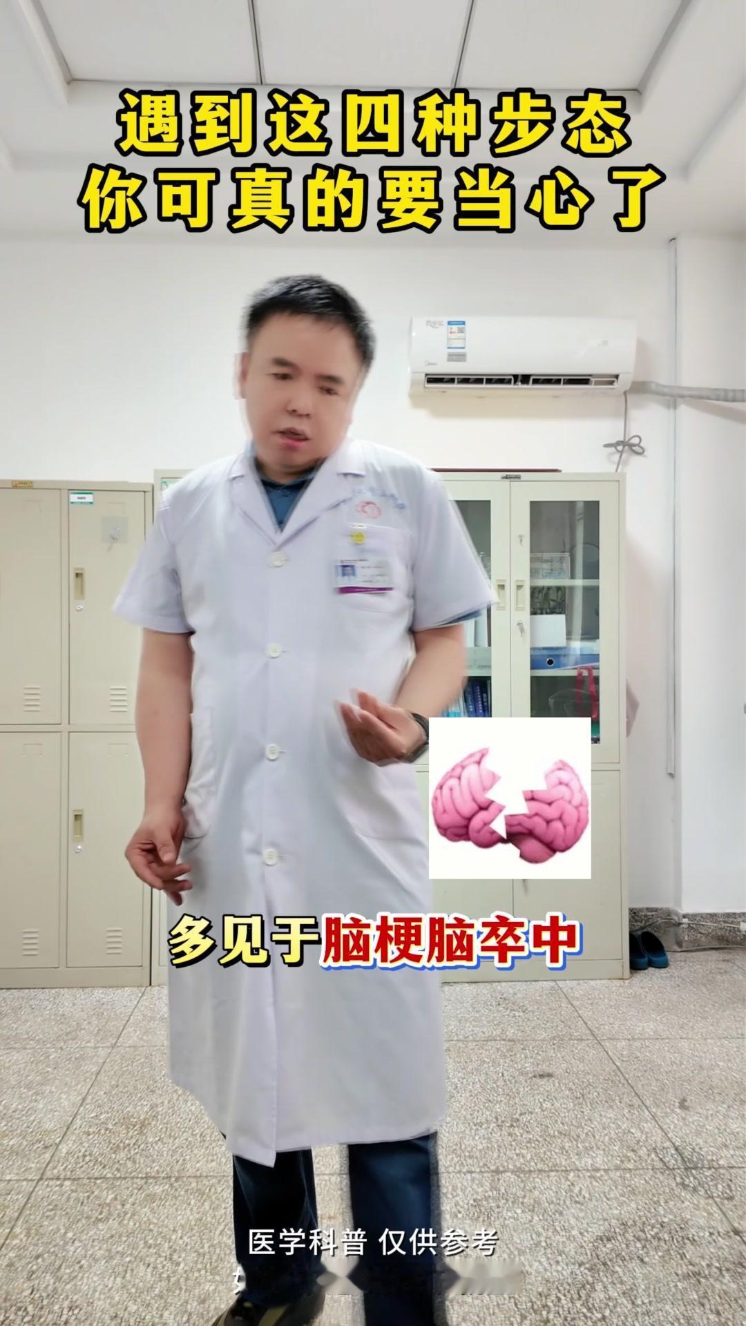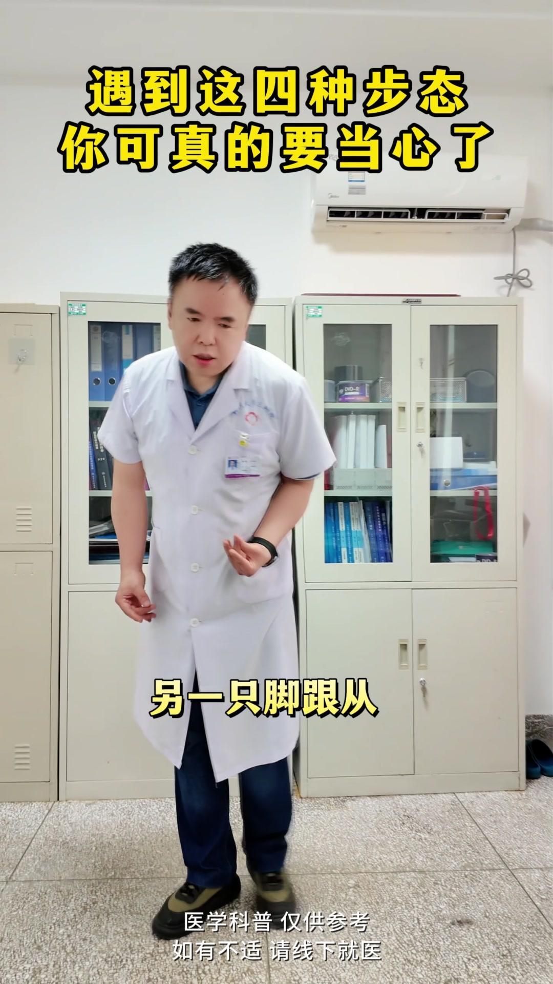 1️⃣小碎步:行走时身体左右摇摆,像醉酒者一样不稳,常见小脑病变或酒精中毒。 2️⃣帕金森小碎步:身体紧张,行走时困难缓慢,是帕金森患者典型症状之一。 3️⃣交叉踮脚步:双腿交叉呈不稳,踮脚移动,多见于脑性瘫痪。 4️⃣超四步:行走时一脚向前跨步,另一只脚跟从手指,呈兰花状,脖子歪斜,多见于脑梗脑卒中。