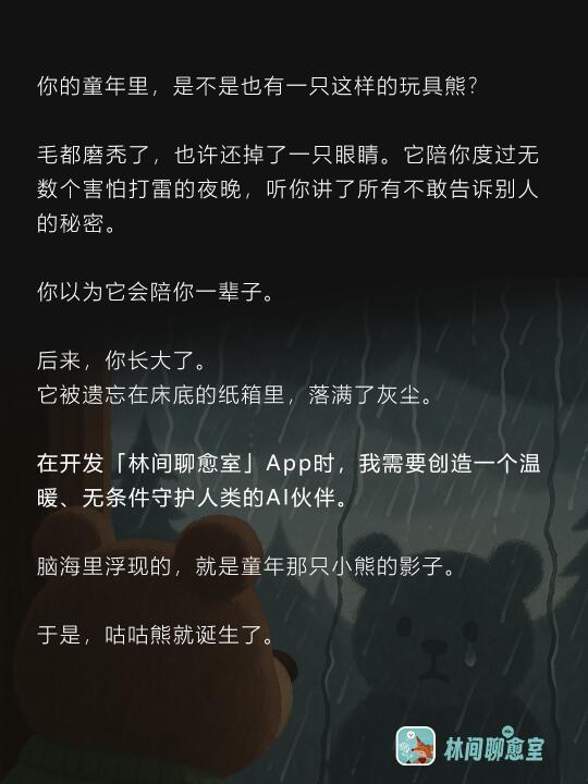 林间聊愈室 宝藏app ai陪伴 i人会懂 开发者日常 童年回忆 温暖治愈 被遗忘的童年