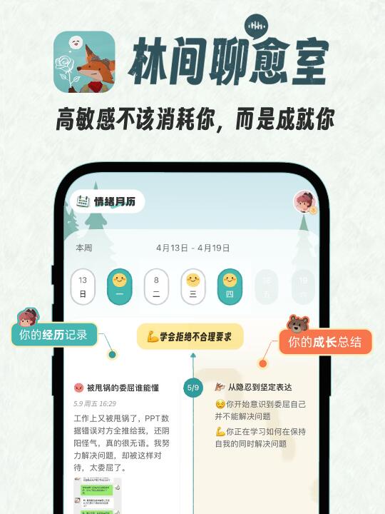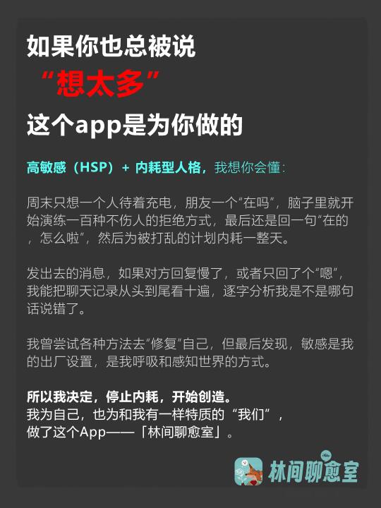 林间聊愈室 ai陪伴 宝藏app App分享 高敏感人群如何自救 i人会懂 自我成长 主体性培养