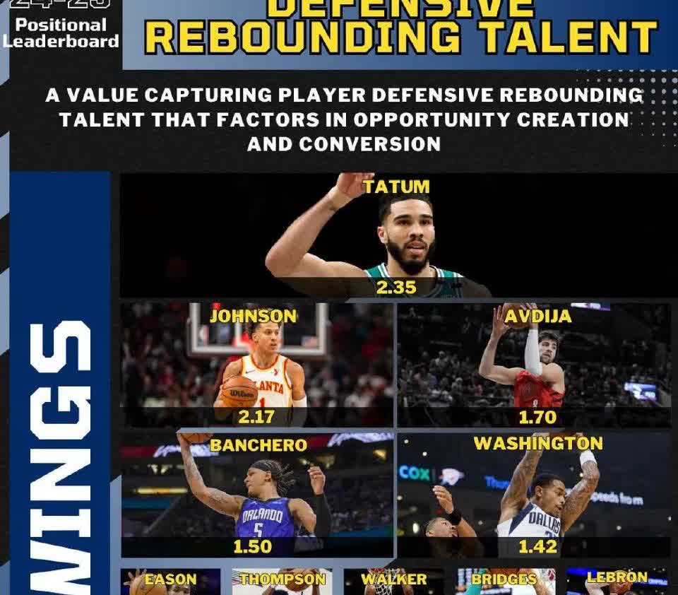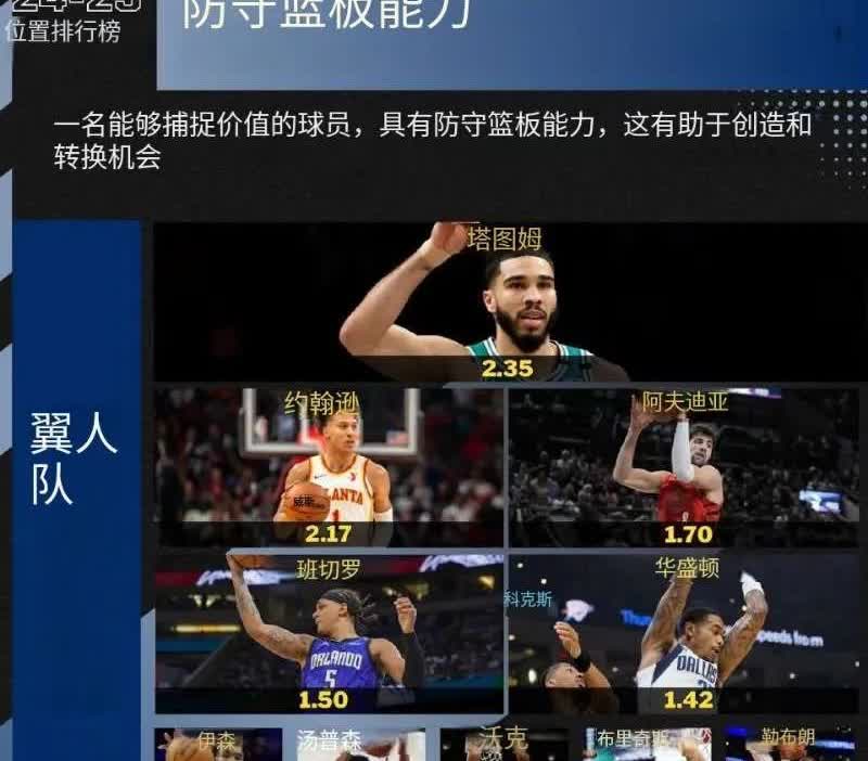 火箭队阿门和尹森又上榜了!不愧是防守悍将! 里德sheppard: 联盟各位置前十防守篮板能力排行榜出炉,24-25赛季,在出场超过1000mins 时间下,锋线位置中凯尔特人队塔图姆2.35 最高,火箭队伊森1.34和阿门1.32分别排名第六和第七,湖人队詹姆斯1.05排名第十 另外第一张那个图尹森和阿门都是火箭队的,我不知道它哪里来的翻译篮网和独行侠队
