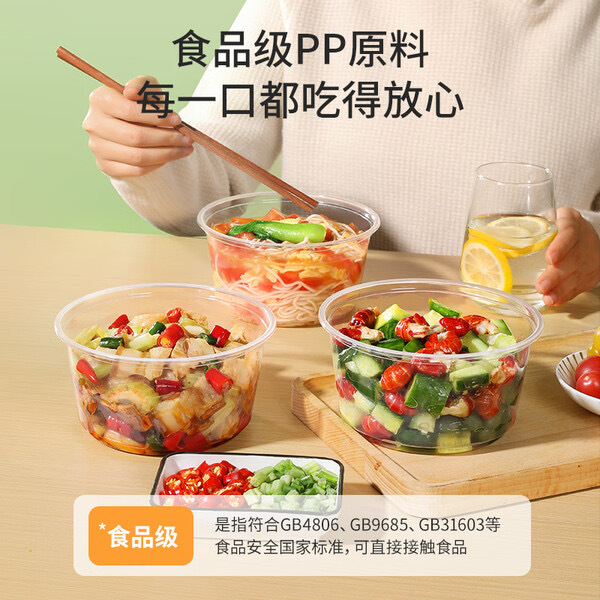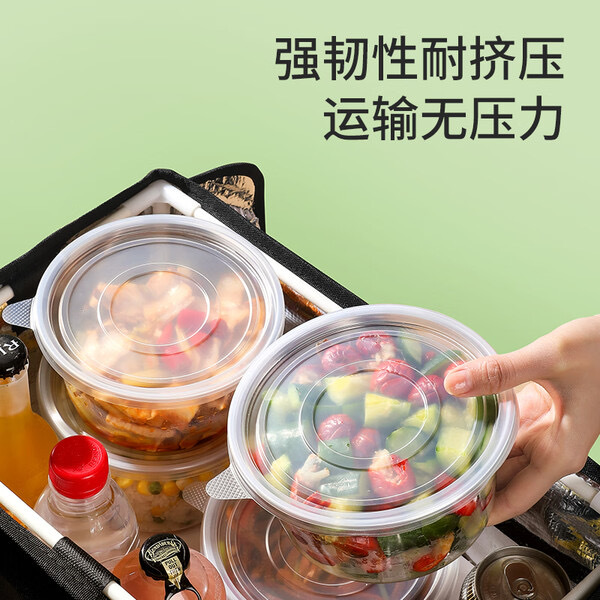 美丽雅一次性碗带盖,食品级饭盒950ml*30套,适合微波加热,打包野餐或外卖都很方便,京东配送更安心哦!
