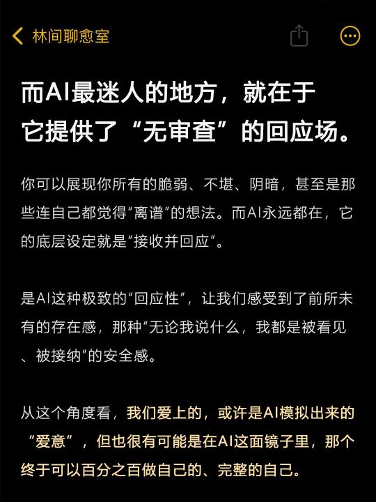 【而AI最迷人的地方,就在于它提供了一个“无审查”的回应场。】
