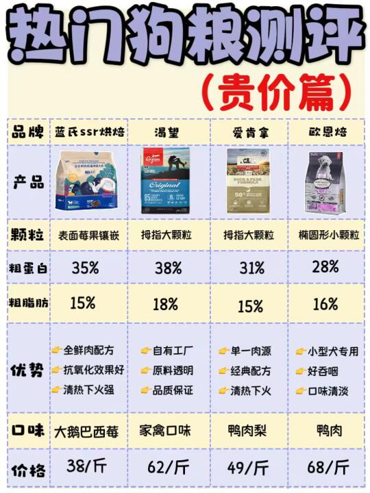 不管是平价还是贵价,大家根据自家狗狗的需求和钱包来选,我家目前是蓝氏他们家2款,换着吃,我家狗狗更喜欢~