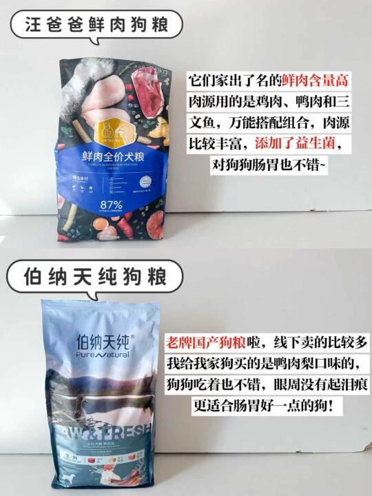 老牌国产狗粮啦,线下卖的比较多,我给我家狗买的是鸭肉梨口味的,狗狗吃着也不错,眼周没有起泪痕,更适合肠胃好一点的狗!