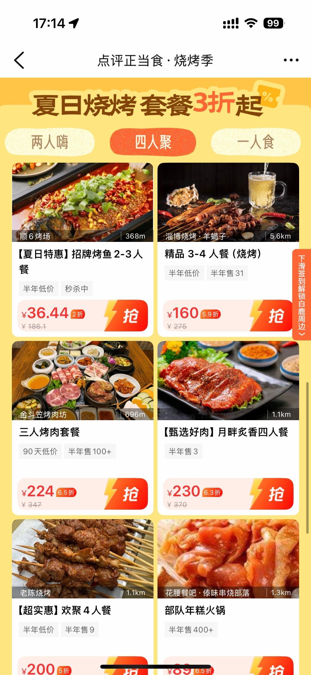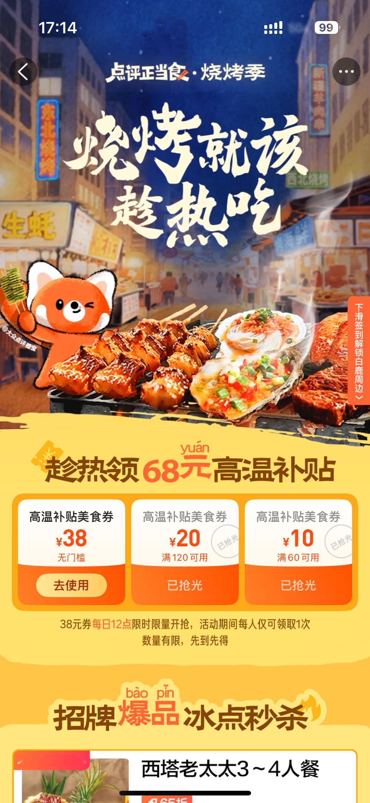 吃烧烤和不吃烧烤的都沉默了福建人被长沙惊现巨型烧烤摊给吓到了!油光光香喷喷的肉串超大屏展示,火星四溅,烟火气扑面而来!小屏上的食客们一看就是吃美了!馋得我立刻打开大众点评APP搜【正当食】,68元高温补贴券轻松GET!再找一家高分烧烤店,省钱和爽吃我都要!烧烤 夏日美食