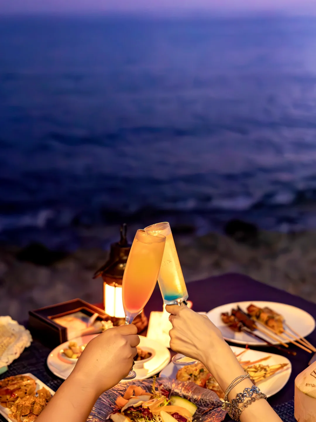 晚风卷起海的气息 伴着夕阳最后一抹金辉 海边的炉火正热情跳跃 迎接一场味觉的盛宴 / 塔斯马尼亚海岛牛排锁住肉香 法式鹅肝与红酒醋雪梨细腻相融 伊比利亚火腿的咸香 与哈密瓜的鲜甜 在餐桌上彼此呼应 / 文昌鸡饭的香气 东山羊排与雪花牛的浓郁 清补凉与香水柠檬巴斯克的清甜 莫凡彼冰淇淋与榴莲的醇香 让这一夜的味道层层递进 / 举杯相望 浪声作伴 灯火与星光一同闪烁 此刻 只有海风与美味 填满整段夜色