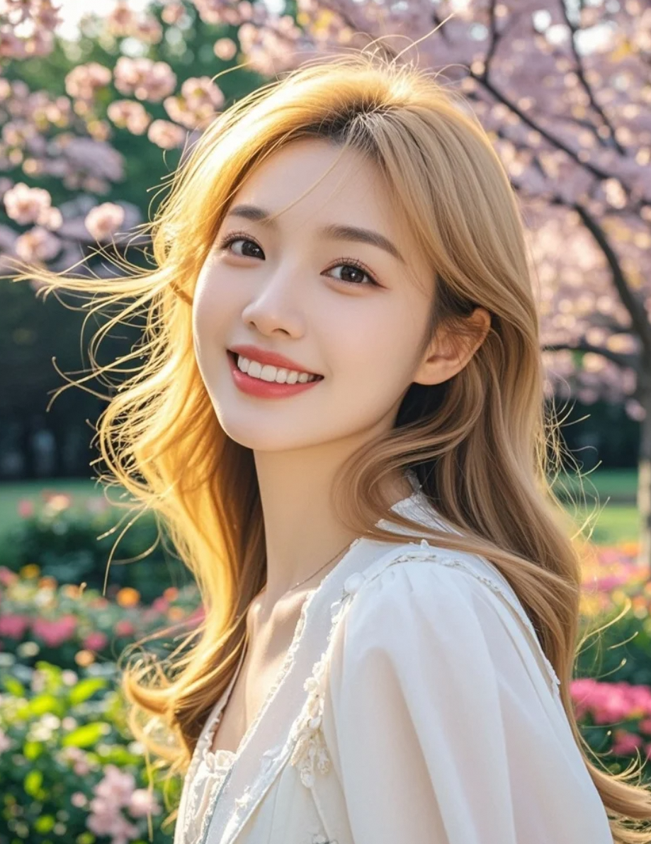 晚风轻抚长发,阳光下的东方女孩,笑容温柔如诗。