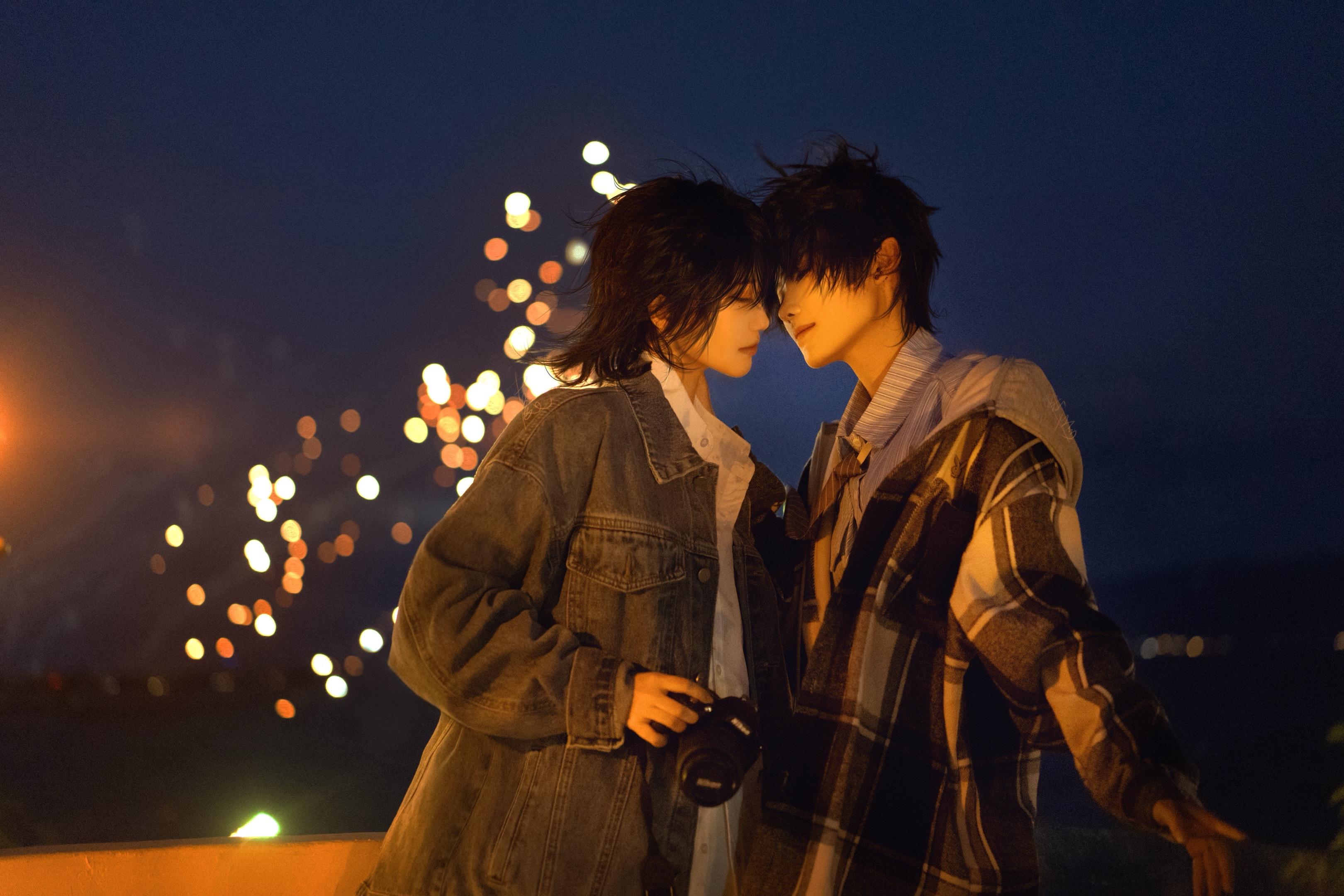 “烟花的花语是许愿你一直在身边。”