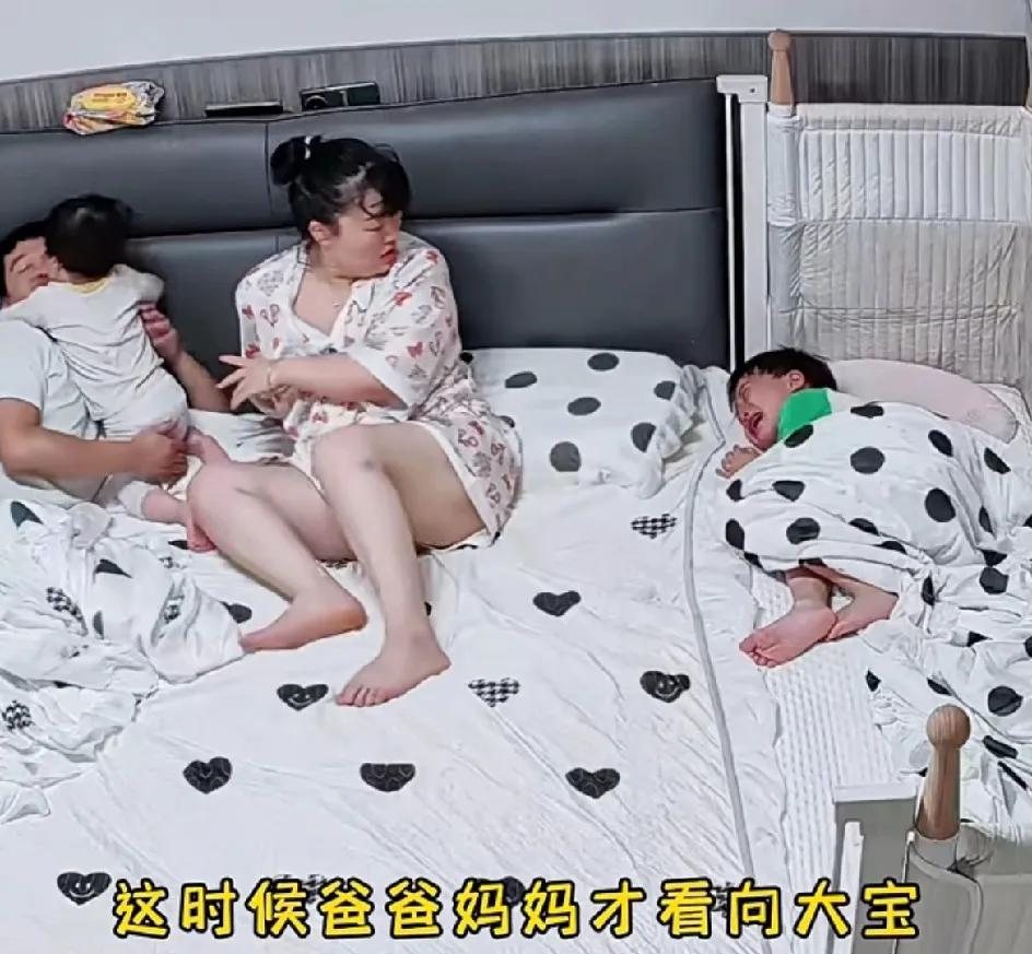 二胎家庭,真能一碗水端平吗?晚饭过后的亲子时光,爸爸妈妈陪小宝开心玩耍,家里欢声
