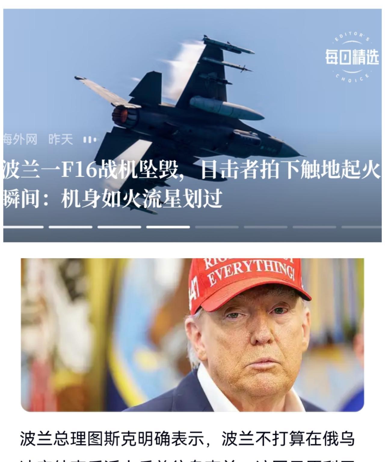 波兰有点悲剧,一句话,损失一架战斗机。 由于波兰反对向俄乌那边投放兵力,也不掏钱替美国付账提供军火,波兰方面话音刚落,F16直接远程关机,弹射都来不及,直接拍地上,火焰招展,飞行员尸骨无存。 现在知道美国货的厉害吧,真的可以远程操作,后门大大,操作多多。