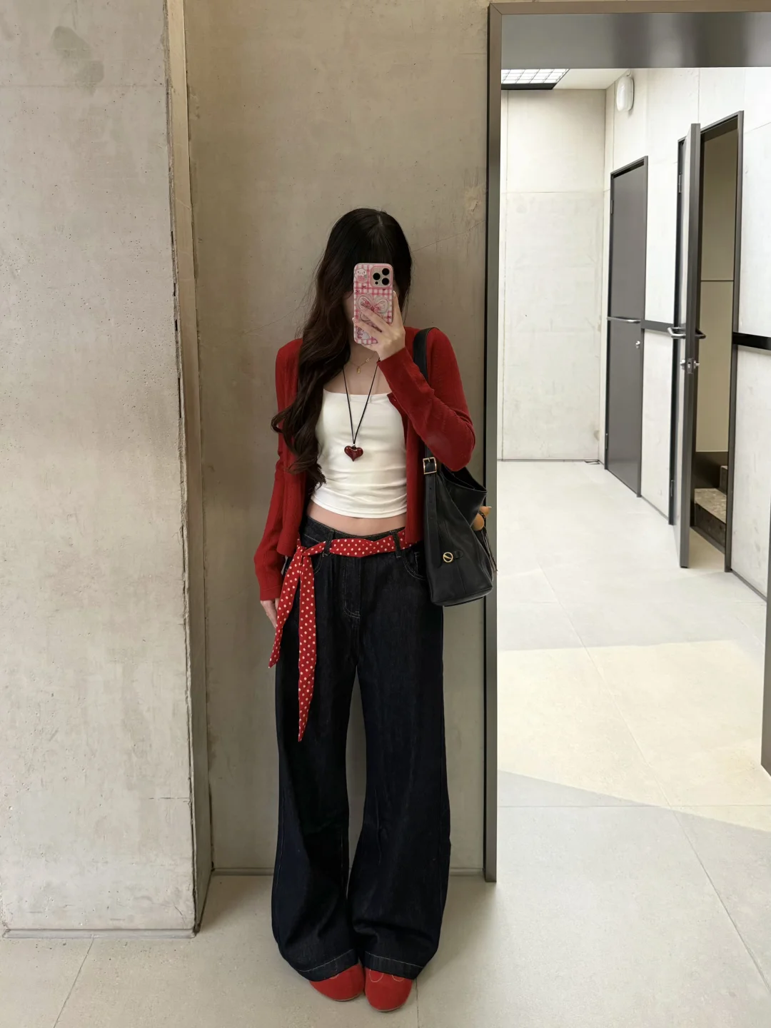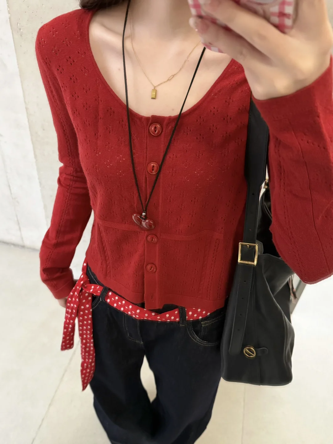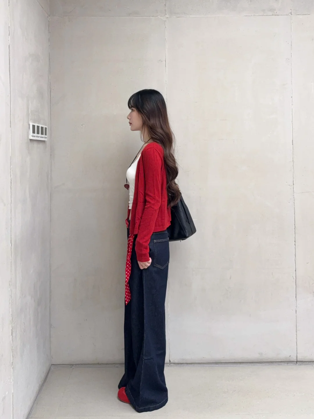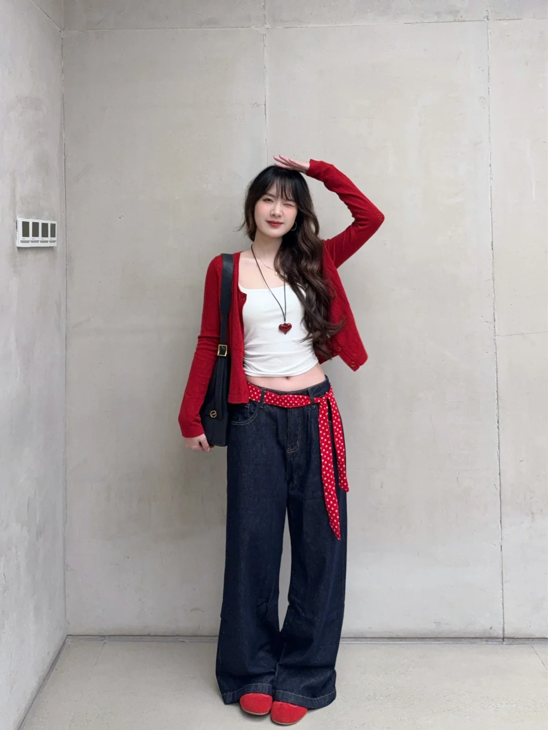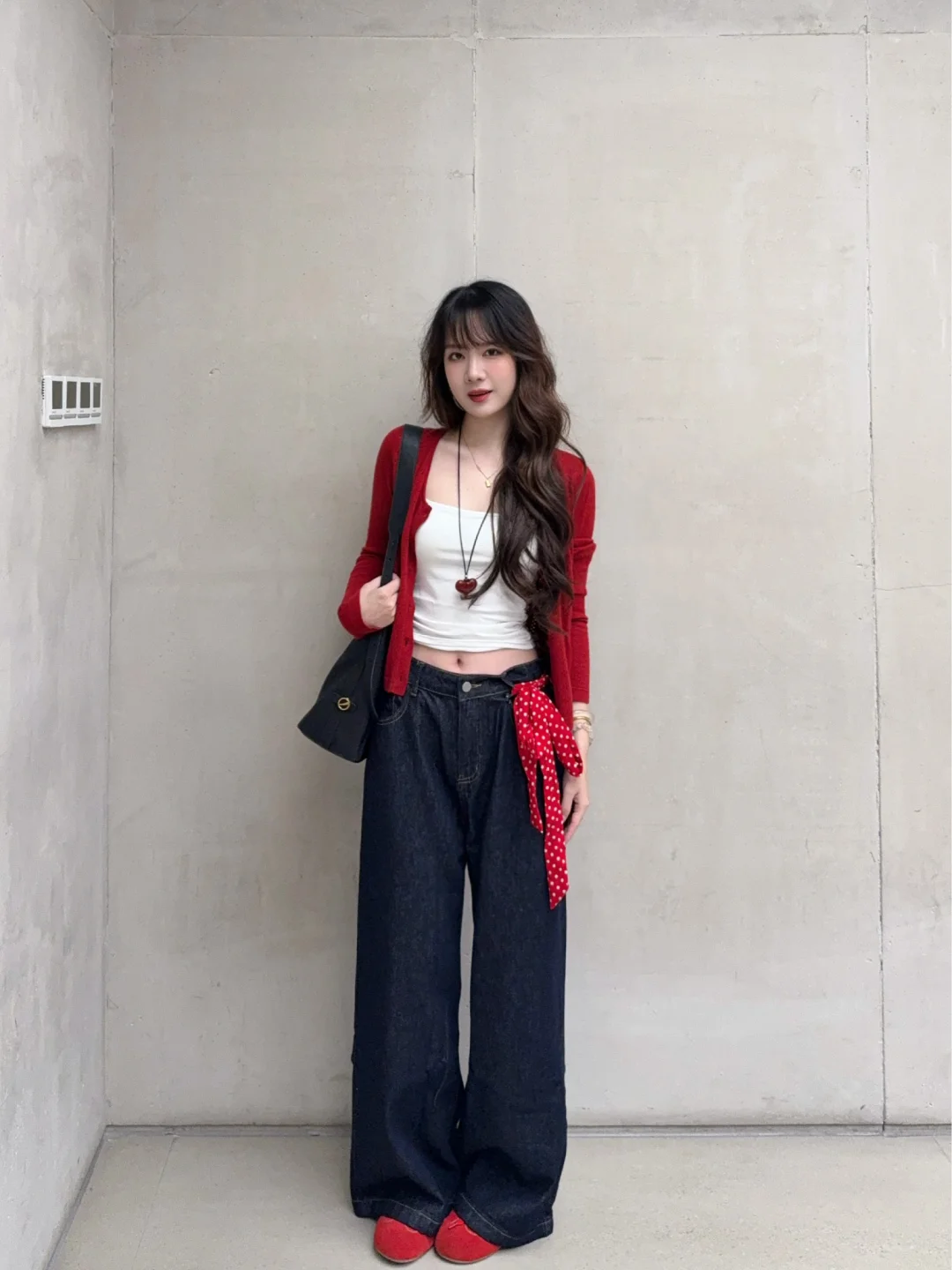 168/105左右 红色系我爱你~~初秋继续穿红色系哈哈哈 这套还算比较有性价比的 我感觉单品 质量都对得起价格 版型也不错 大家也可以参考一下搭配思路 红色/蓝色/黄色开衫➕白色吊带➕原牛藏青色牛仔裤➕红蓝黄色系的鞋子➕黑色/棕色的托特大包 个人觉得就是很日常通勤又很好看的感觉 不怎么挑人 不喜欢露肚子可以买长一点的吊带 上短下长上窄下宽上紧下松真的很显瘦 很适合梨型身材 非常修饰 扬长避短 穿了就知道 虽然我不是特别梨型 但是相对来说有一点点偏梨型 胯比较大的 穿这种裤子还是很显腰细的~