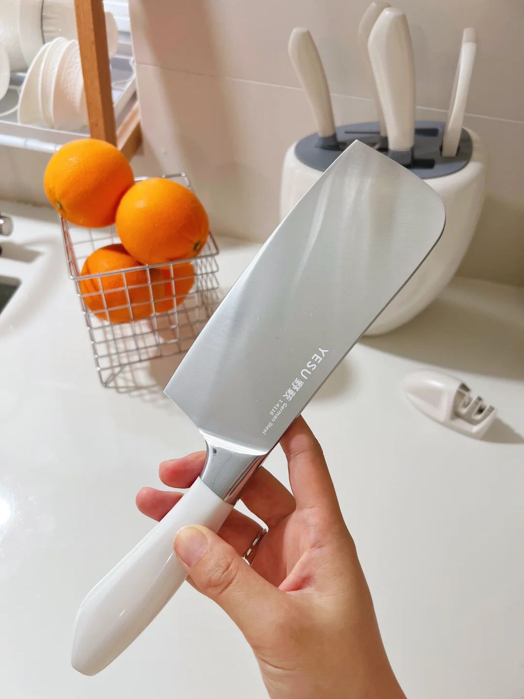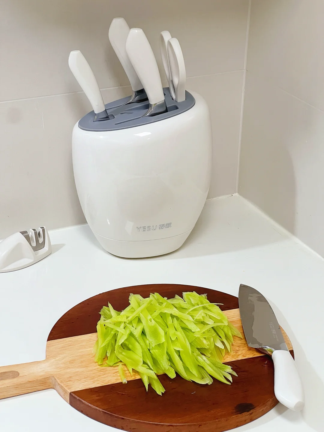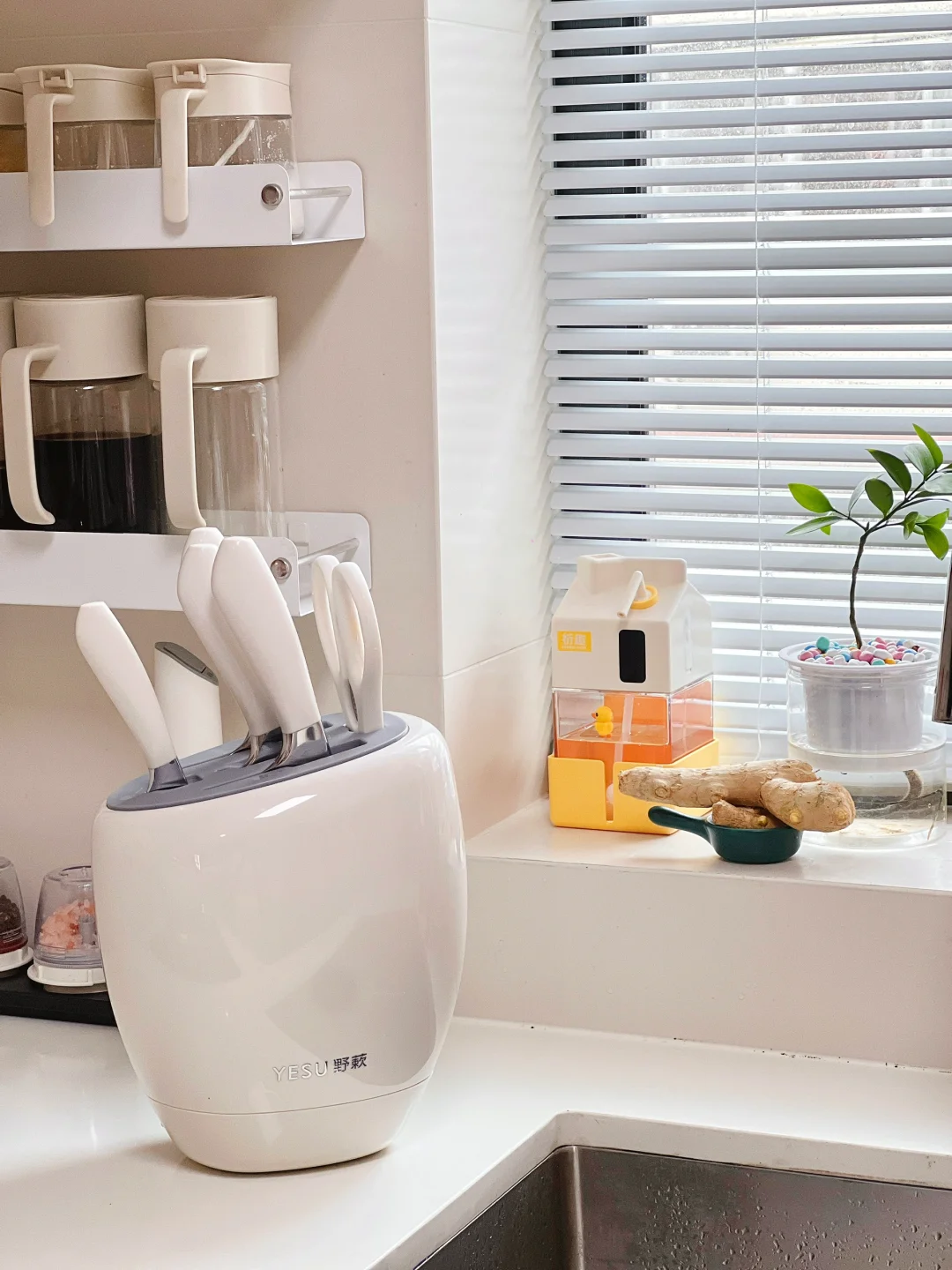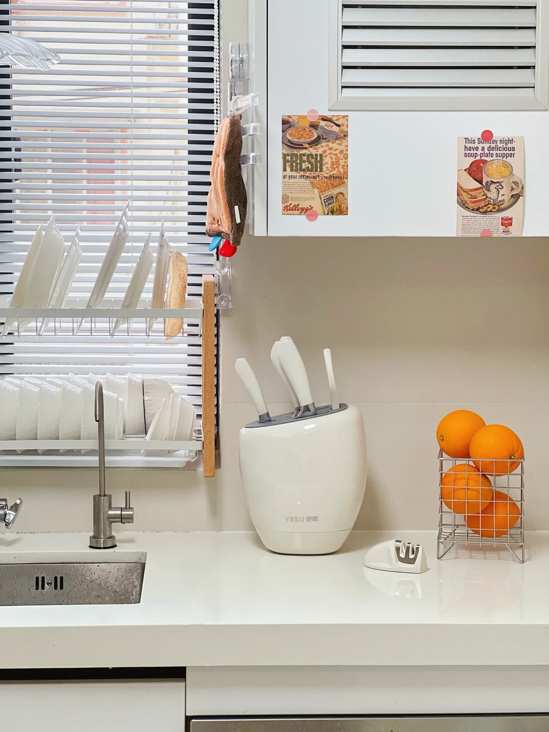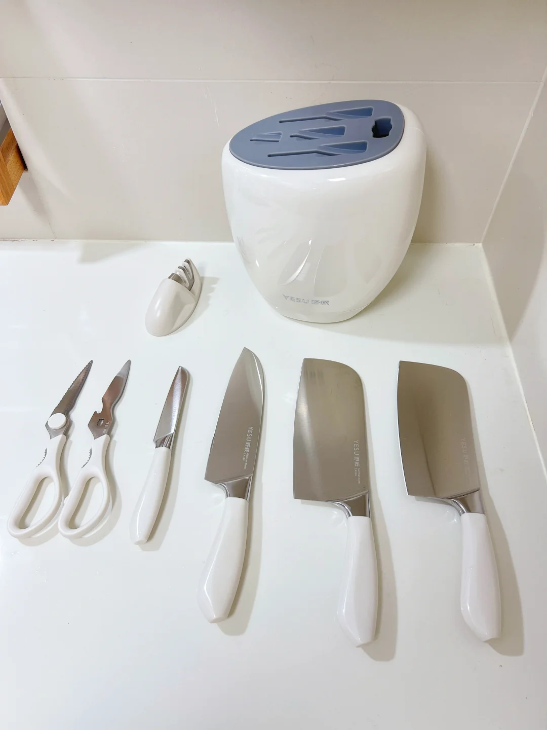 3.5平小厨房入住1年多了 因为空间小,整体都是浅色系 连小物件我都锁死同色系 最近入手了这个刀具套装 ✨奶油白刀身配极简线条 7件套把切肉/切菜/切水果全承包 专刀专用安全感爆棚 再也不用担心交叉污染啦~ ✨最戳我的是刀身轻 单手切几个菜都不累手腕 现在每天做饭都超有仪式感 果然高颜值厨具才是下厨的动力密码✌️