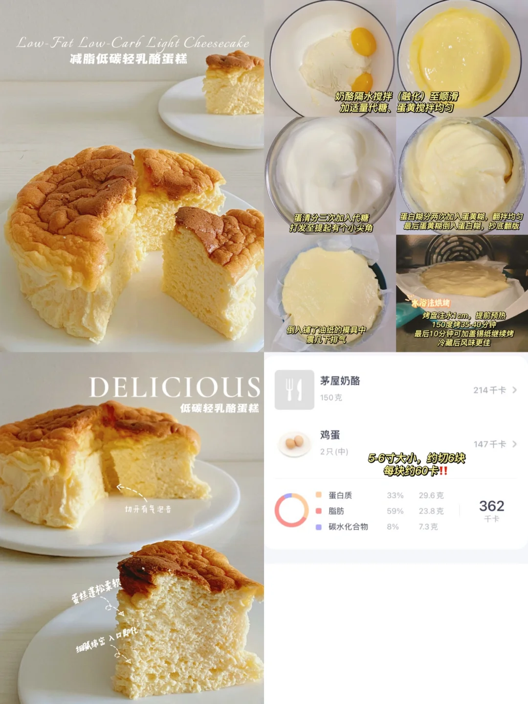 💕无糖油无面粉,低脂·低卡·低碳,应有尽有,口感像轻乳酪和舒芙蕾蛋糕的结合体‼️