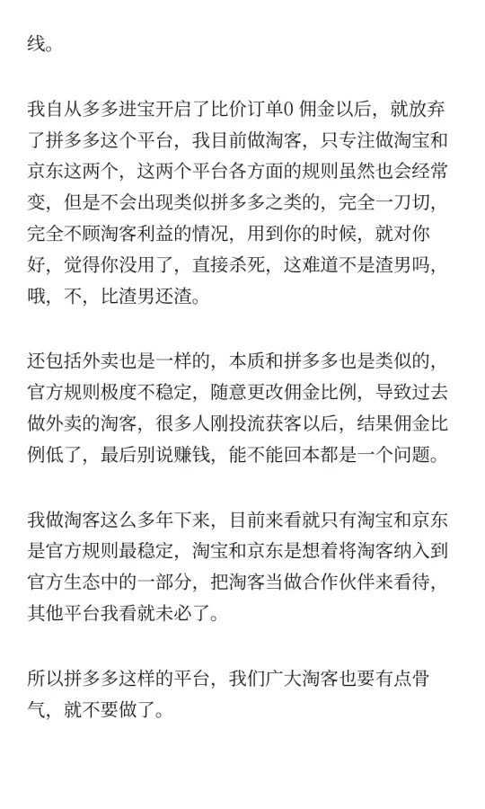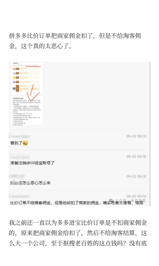 拼多多比价订单扣了商家佣金,但不给淘客!