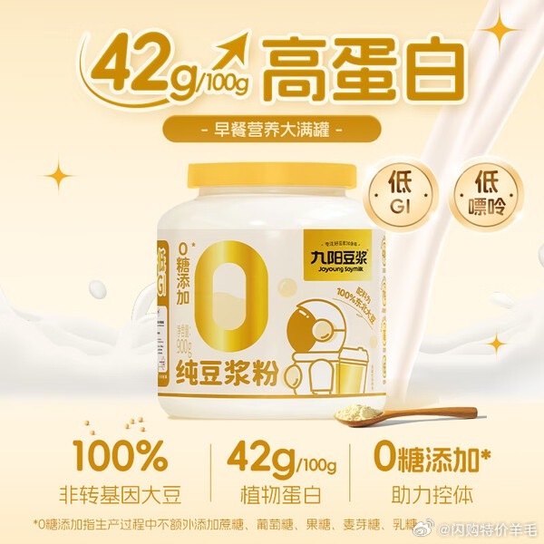 【JD到手价49.9】九阳豆浆纯豆浆粉900g大白罐无糖添加豆浆粉早餐豆浆原味