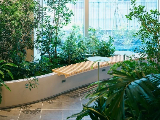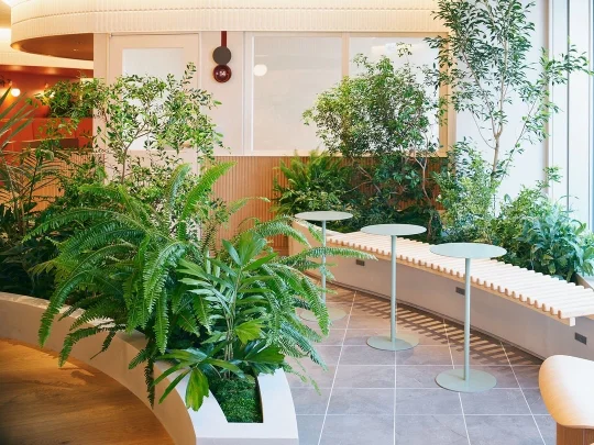 兼顾美学与功能性的室内绿植设计实例分享 流畅的弧形绿植区与休憩设施融合,既保障通行效率,又借围合布局营造舒适的停留感,实现功能与景观统一。 植物配置遵循“层次+适配”原则,小乔木构建骨架,避免了叶片对光线的过度遮挡。耐阴的蕨类填补空间,兼顾低养护与景观长效性,维持了室内空间的明亮通透。 绿植设计的细节皆为空间体验服务。 From ins :solso_jp ——————