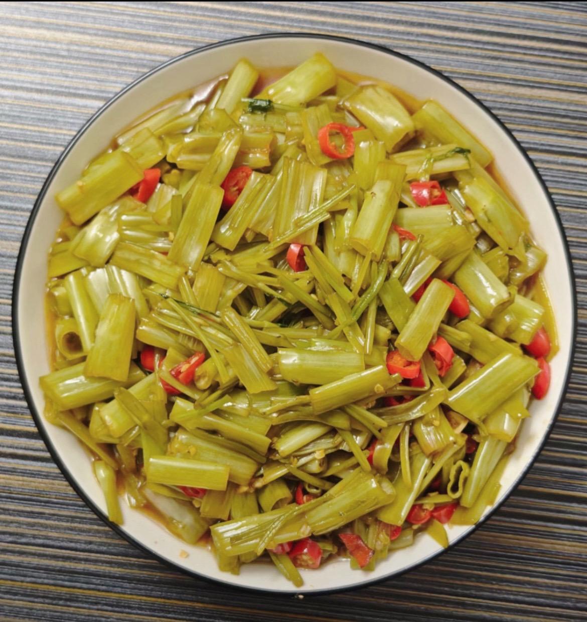 今夜的晚餐。酸空心菜梗配白米饭