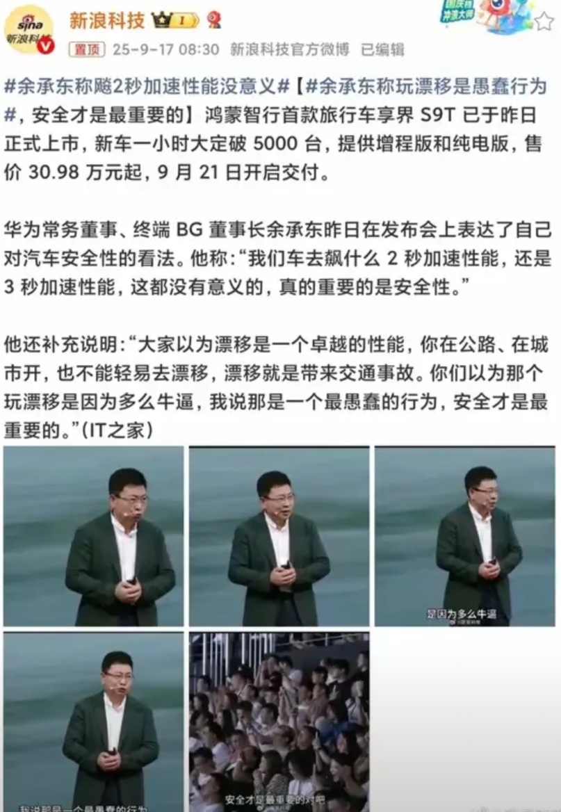 众所周知,余承东从来不攻击竞争对手,那说2秒3秒加速没意义应该是在反思,毕竟造了这么多车,也走过不少弯路,比如智界s7的零百加速3.3秒,“让每一匹马力都在安全中释放”,这一点完全同意余承东,的确没有意义,安全第一,善于反思,给余承东点赞