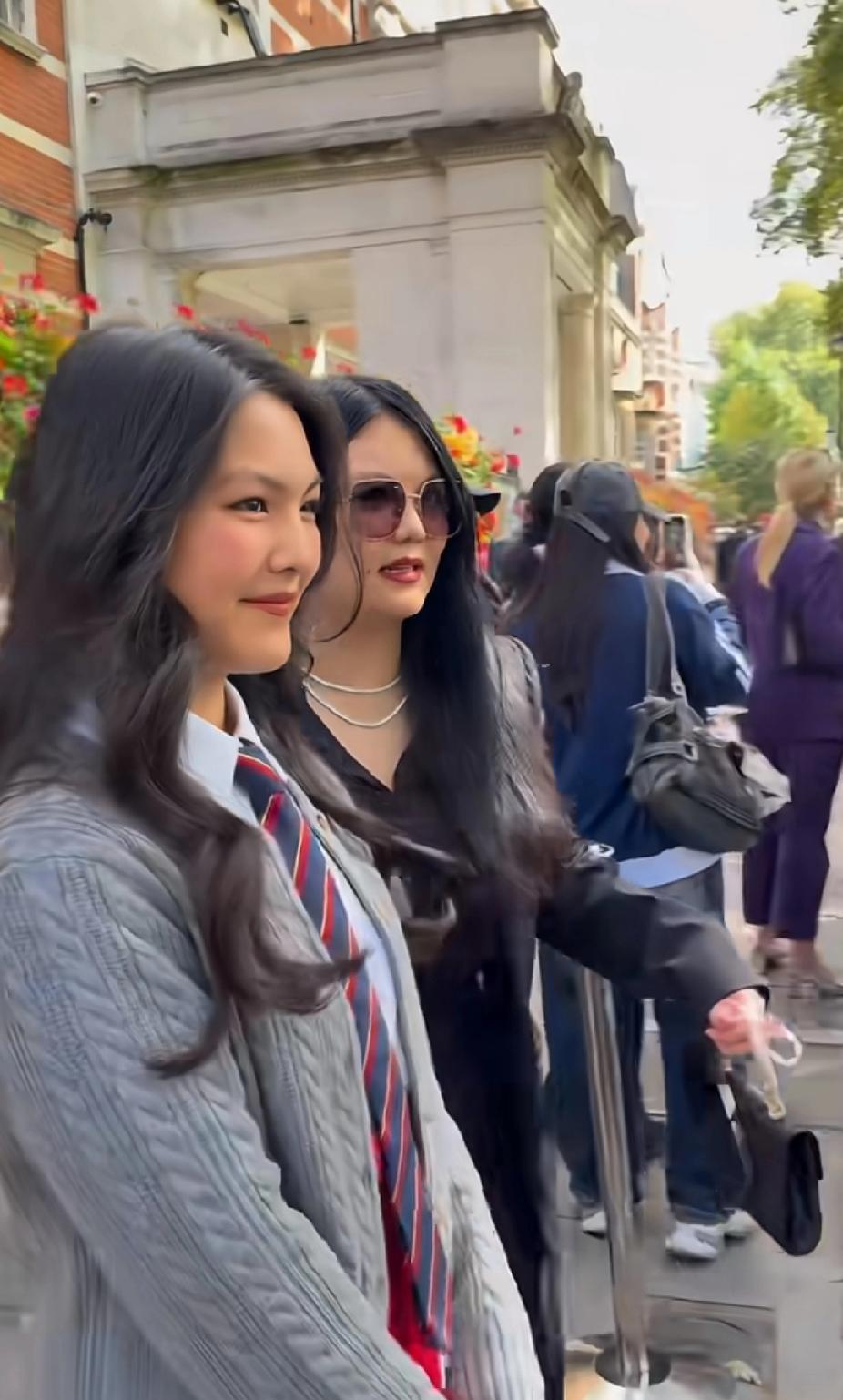 李湘现身英国接女儿王诗龄,富态优雅尽显母爱 李湘现身英国某名校门口接女儿王诗龄,