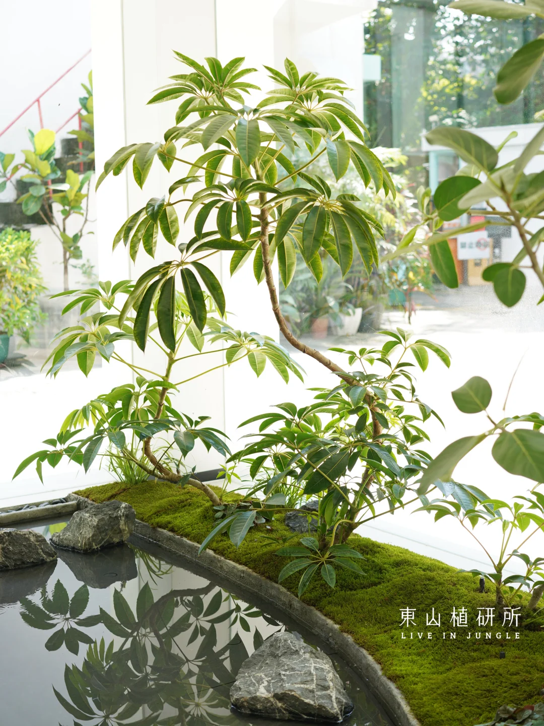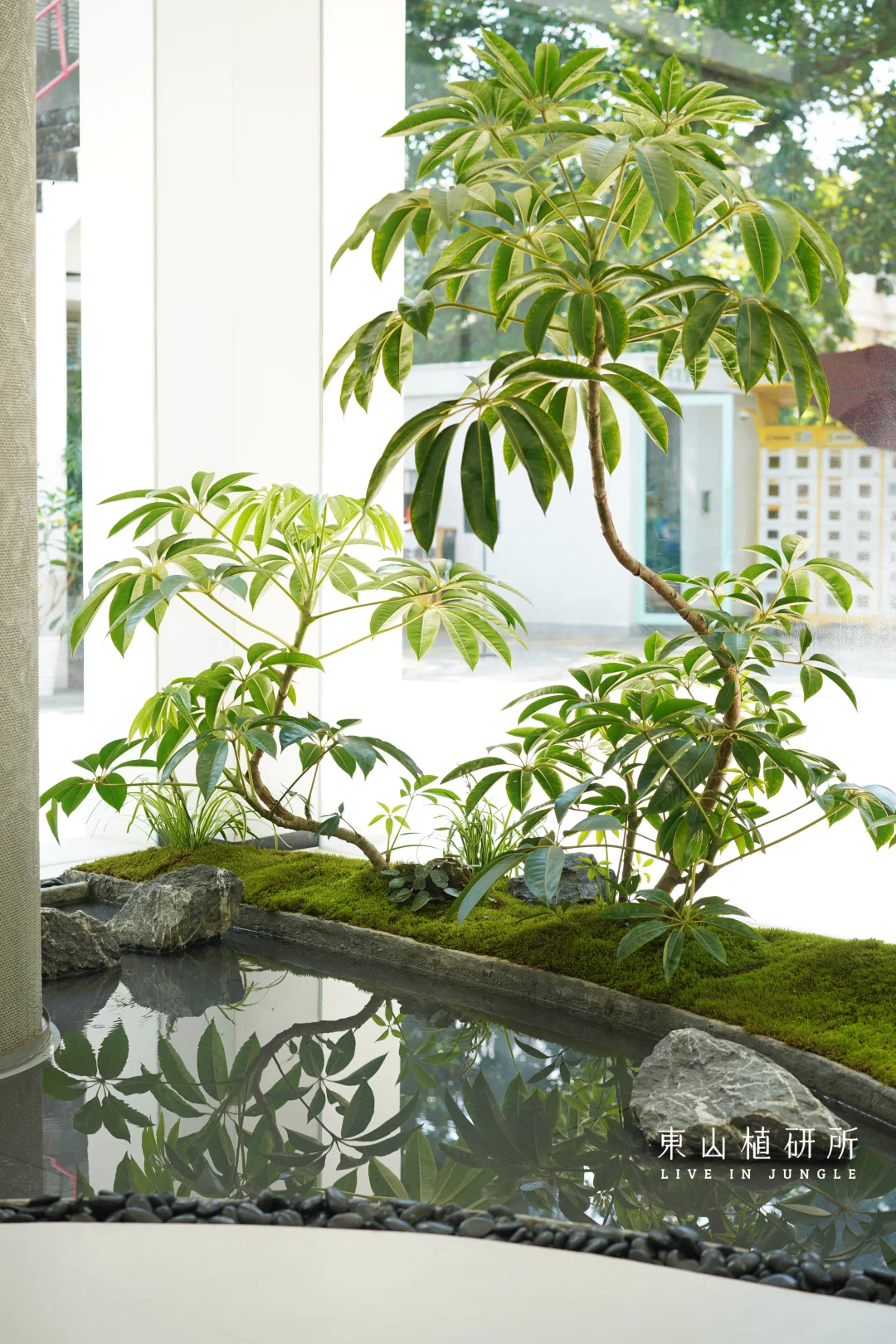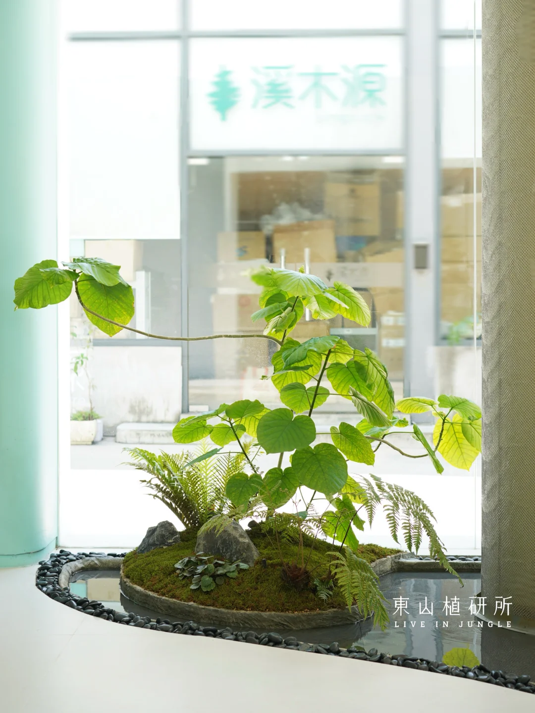 室内绿植设计 由绿植、流水、石头构筑的绿植池 是繁忙生活里的疗愈绿洲 澄澈的玻璃将外界的光线与室内的绿意衔接 苔藓如绒毯轻覆石间,阳光投下灵动光斑与树影 池水似明镜,倒映着叶姿 把自然的绿意与空间的简约 揉成一首疗愈的诗 ————