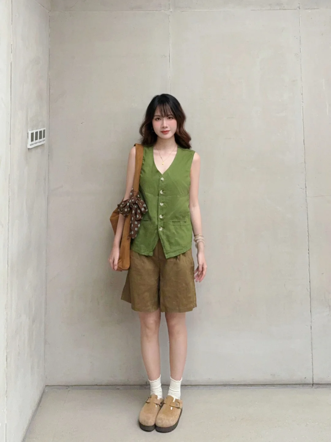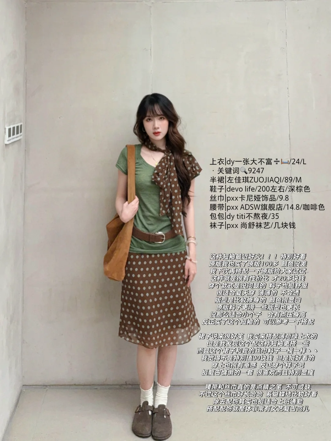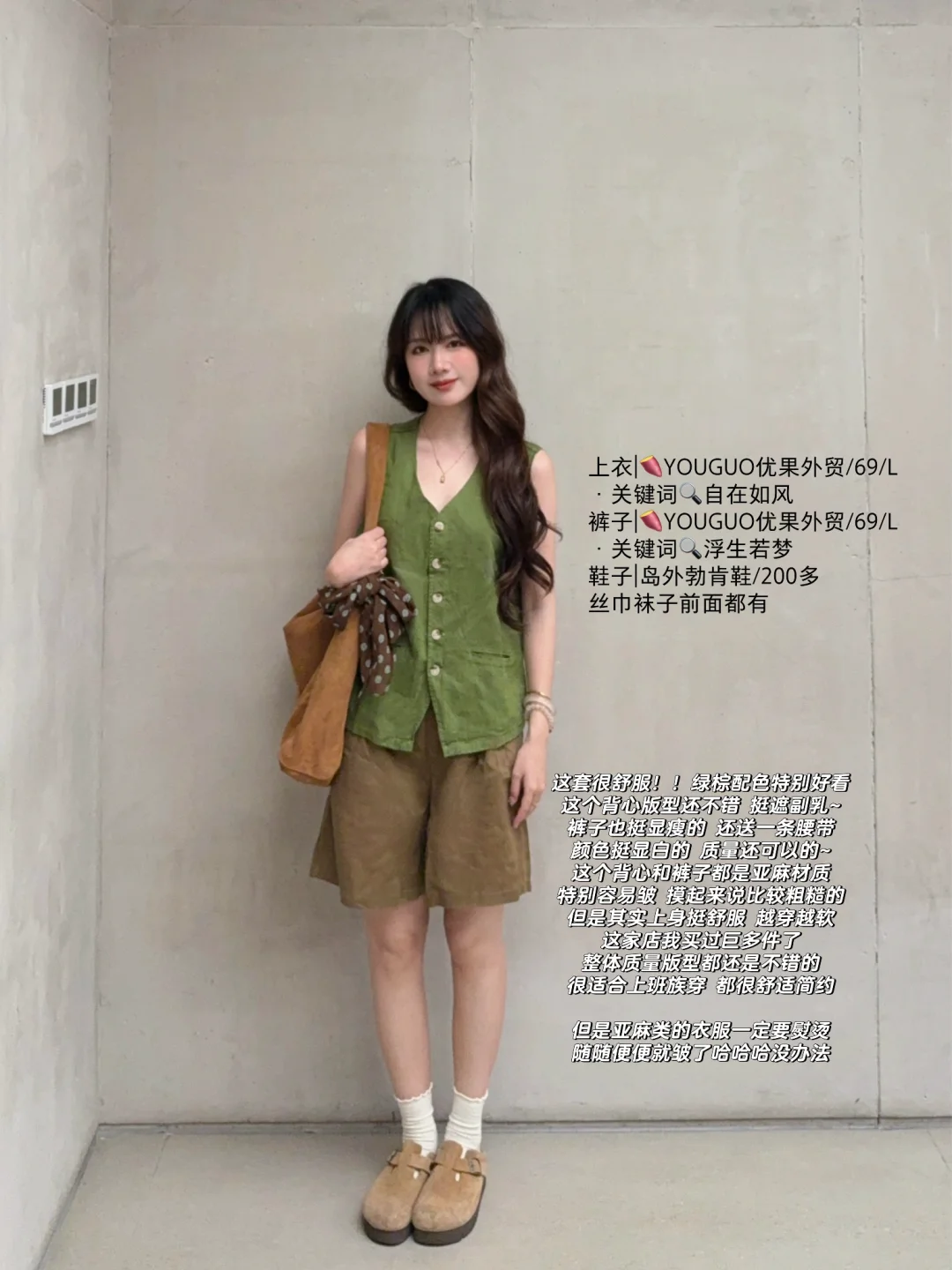 168/106 今天分享两套特别满意的绿棕搭配 除了好看好看想不出来什么形容词 舒适复古文艺范儿~ 最近其实搭配灵感还蛮多的 很喜欢这种森系艺术感 简单又耐看 但是又很不一样 (穿去演唱会!当绿色应援色穿搭也是可以的吧哈哈哈 我觉得很舒服啊又很好看~)