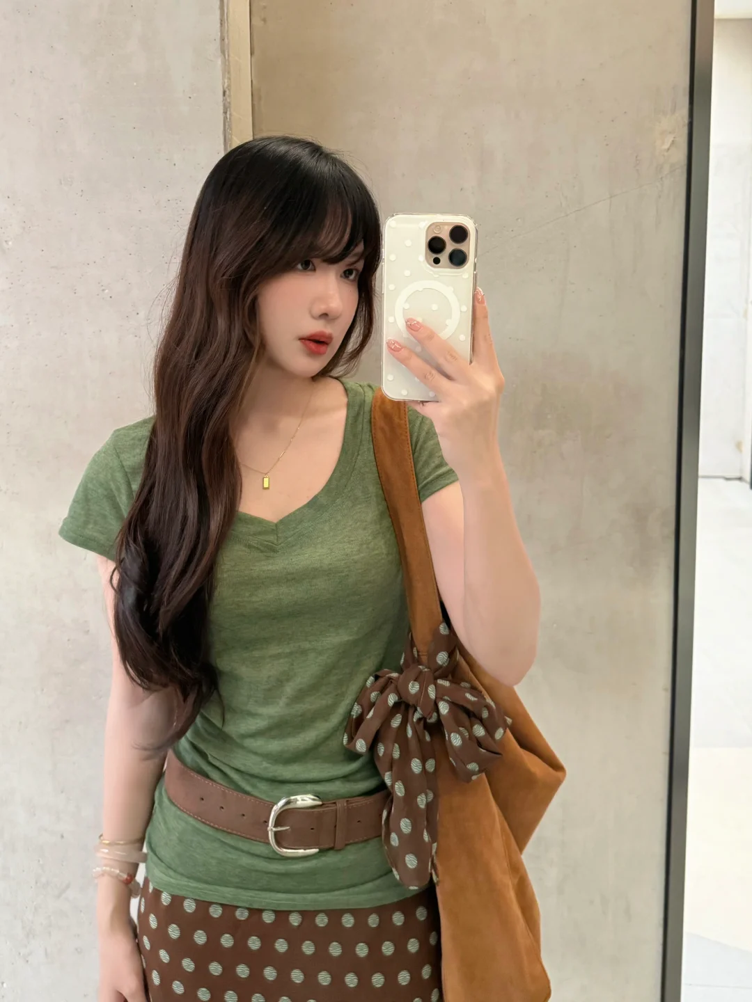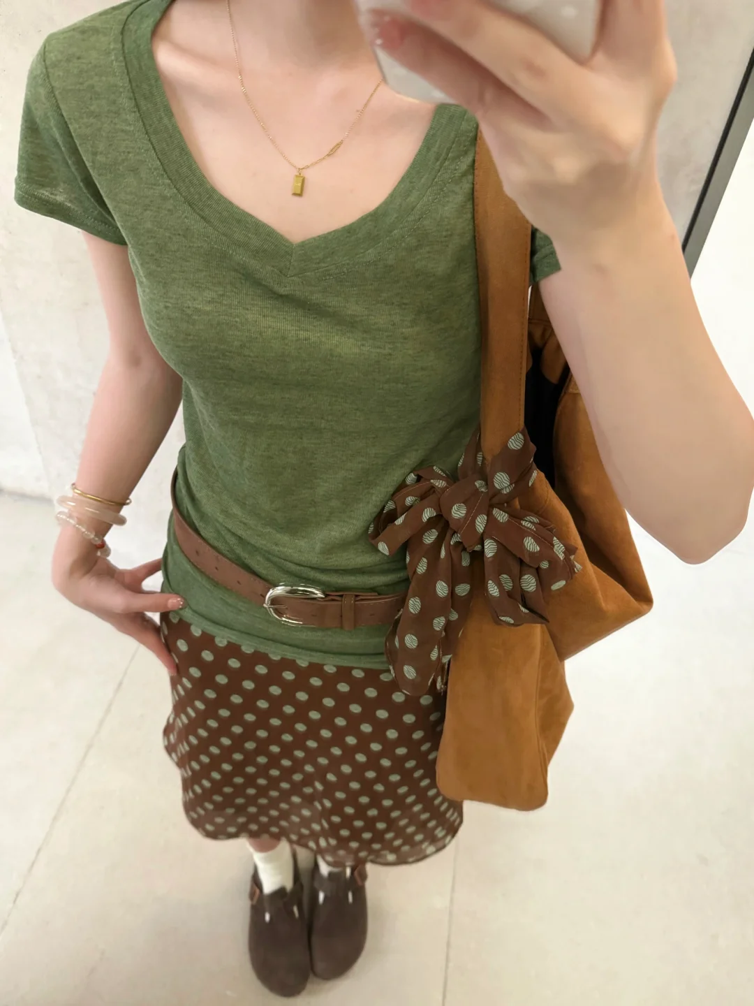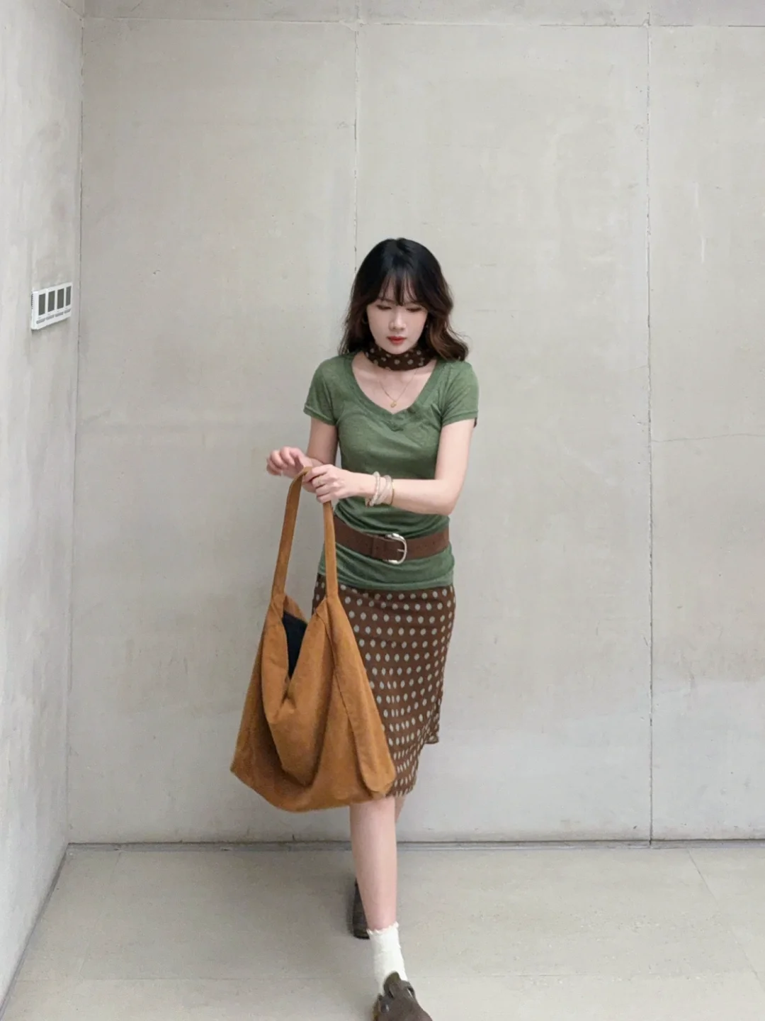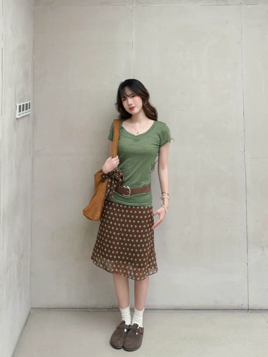 168/106 今天分享两套特别满意的绿棕搭配 除了好看好看想不出来什么形容词 舒适复古文艺范儿~ 最近其实搭配灵感还蛮多的 很喜欢这种森系艺术感 简单又耐看 但是又很不一样 (穿去演唱会!当绿色应援色穿搭也是可以的吧哈哈哈 我觉得很舒服啊又很好看~)