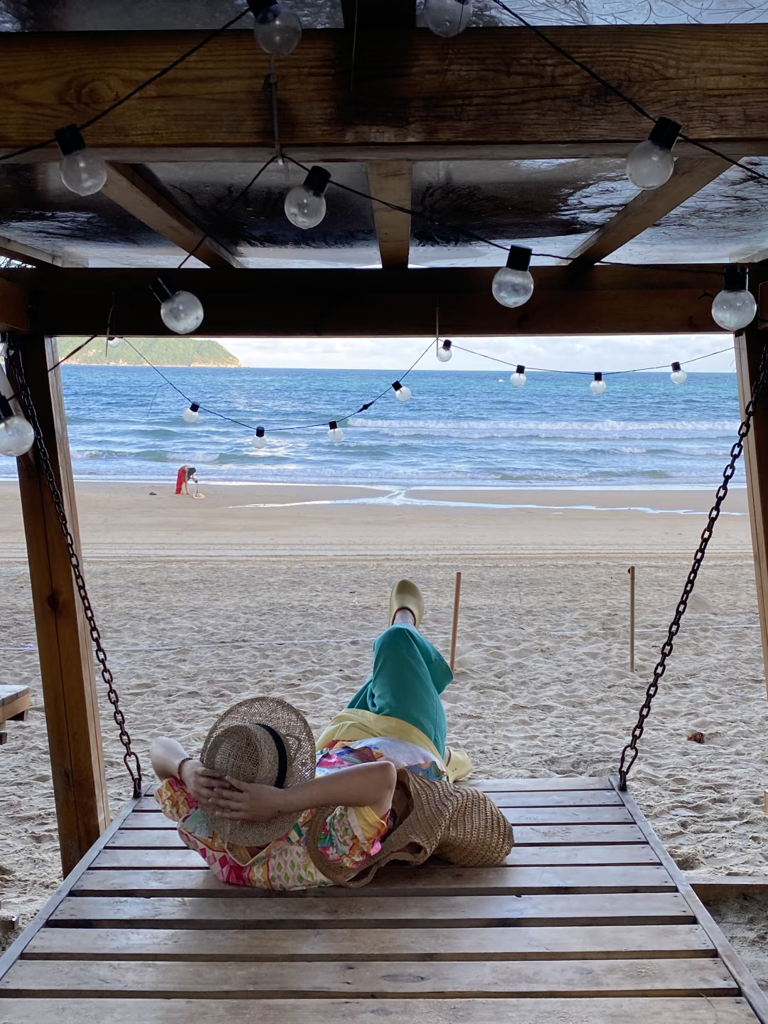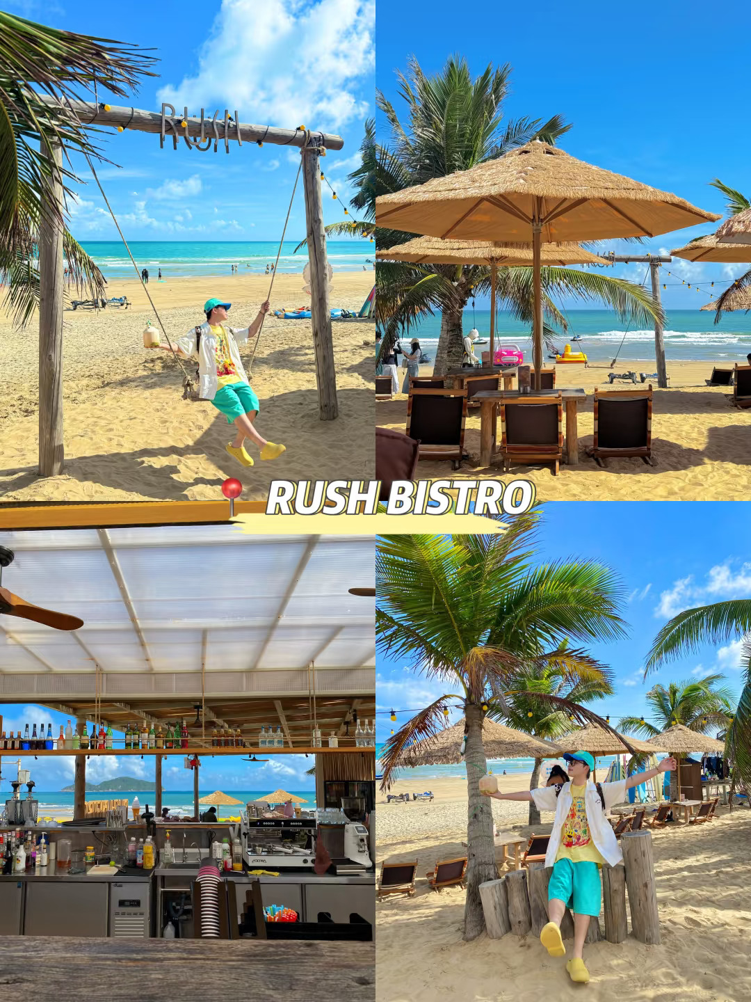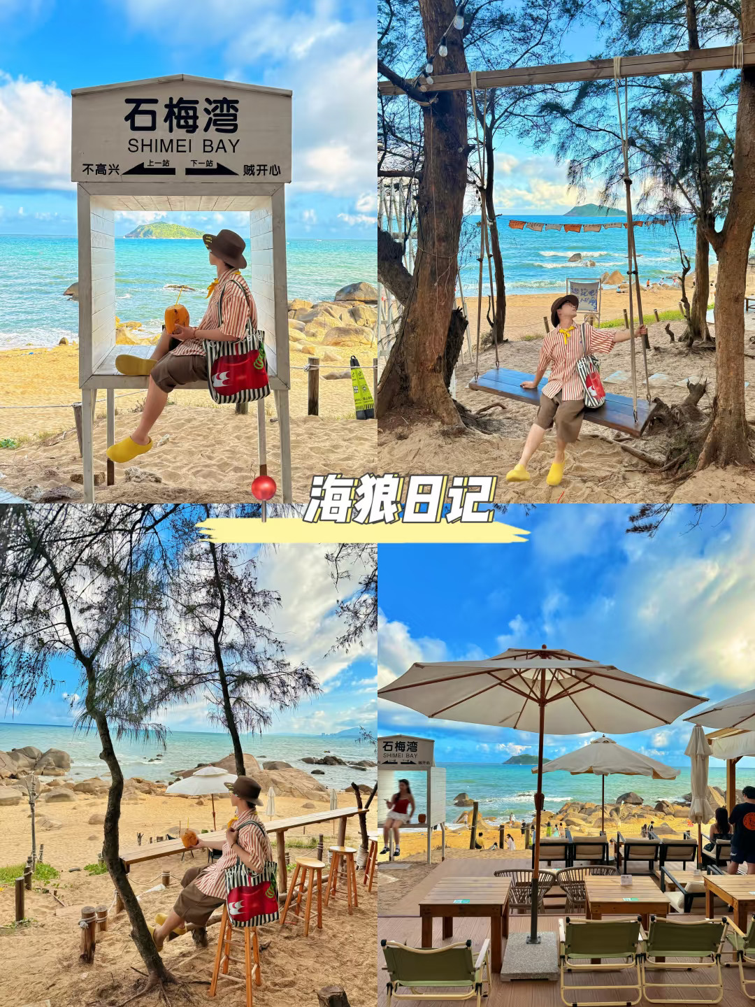 ✔️海狼日记(p4)很原生态风格的咖啡厅 石梅湾站牌 秋千 海边木桌
