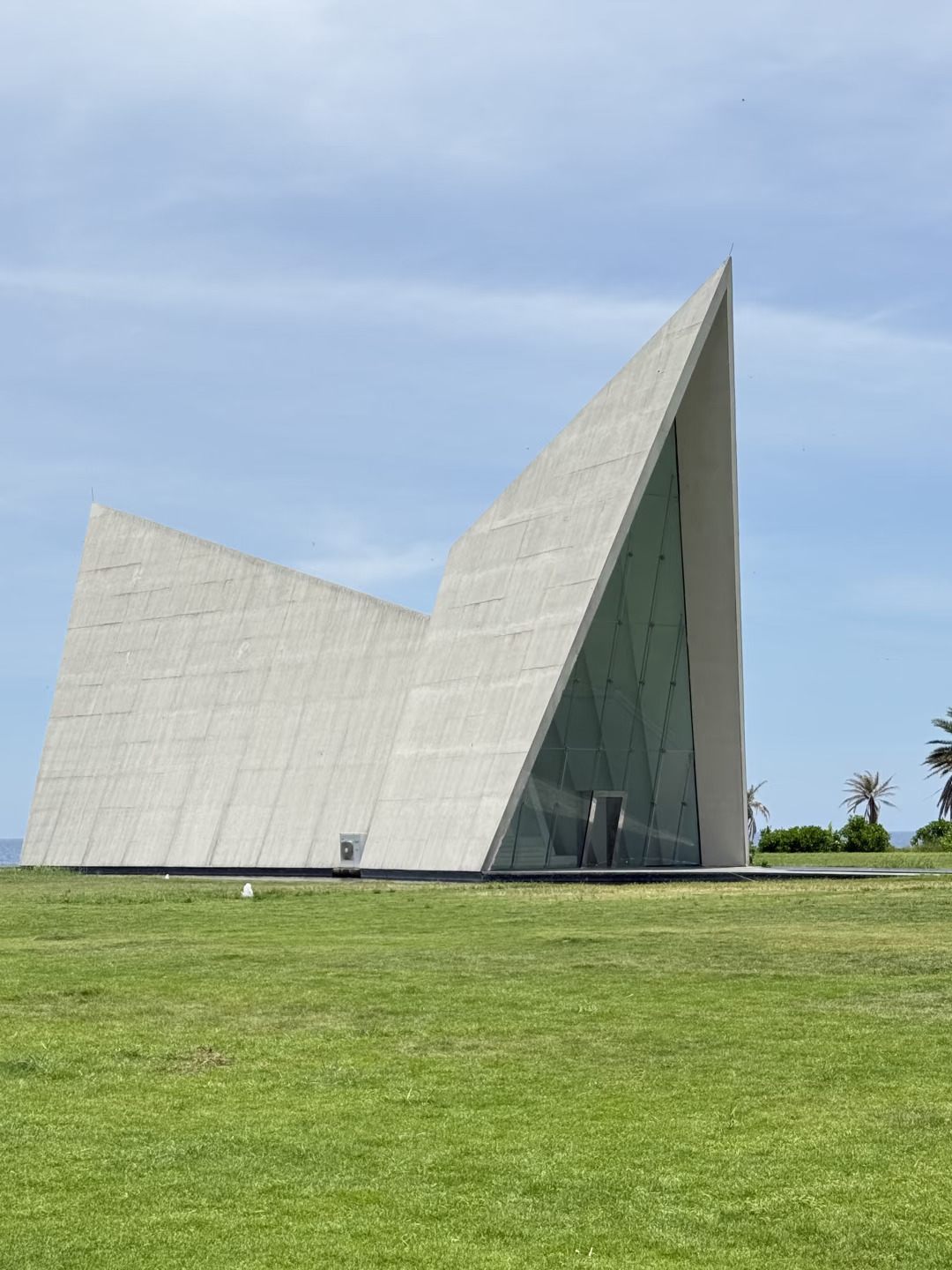 日月湾教堂(p15)纯色的几何线条 背靠无垠的蔚蓝大海