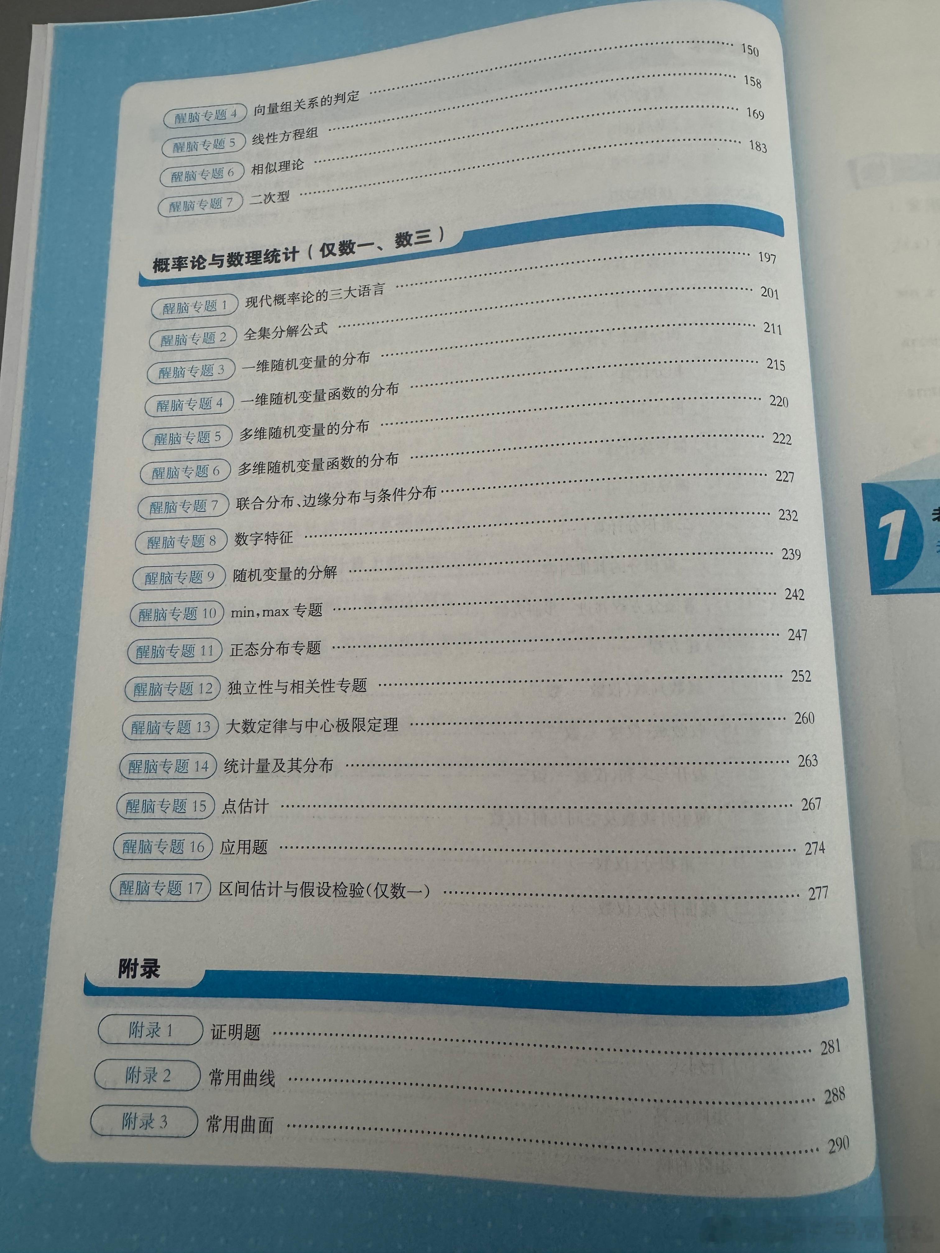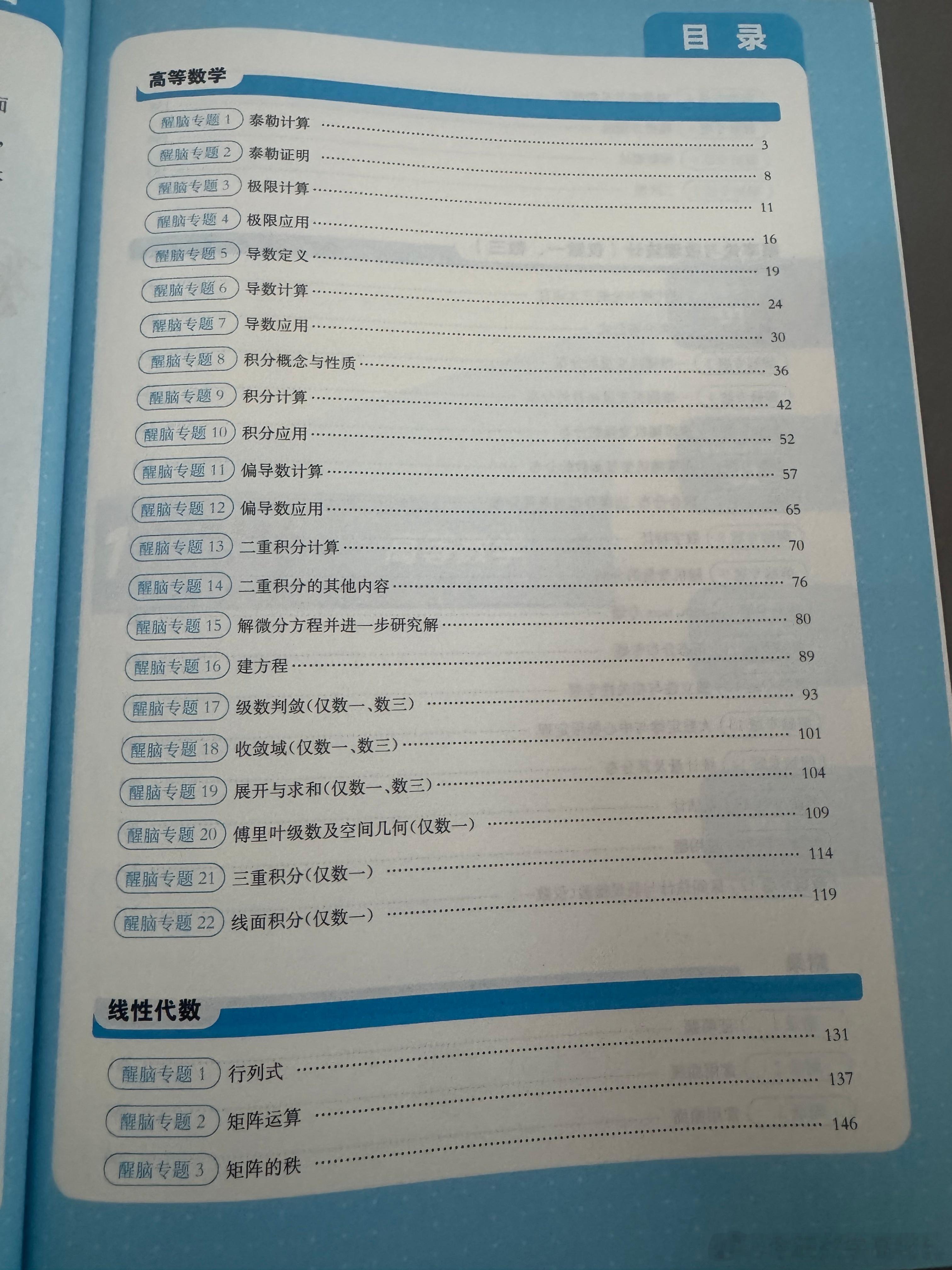 [干杯]本书共有46个醒脑专题(高数22+线代7+概率17),结构清晰,题目精炼!