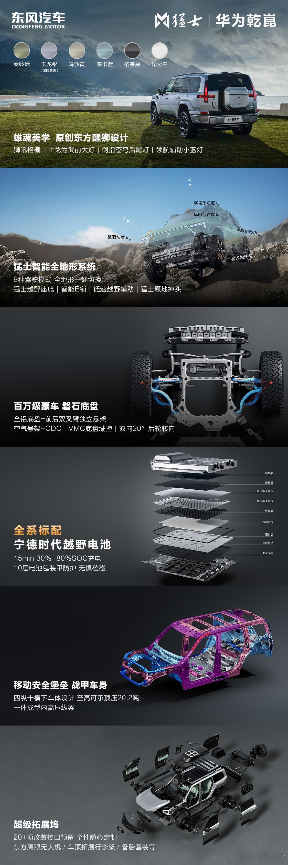 驾驶压力?续航焦虑?不存在的!猛士M817 Max+版搭载全栈华为技术,且原31.8度电池升级为50.4度大电池包!在华为乾崑顶级技术的赋能下,实现可城可野可远方。智能越野,既有超聪明的大脑,也要超持久的耐力! 华为乾崑