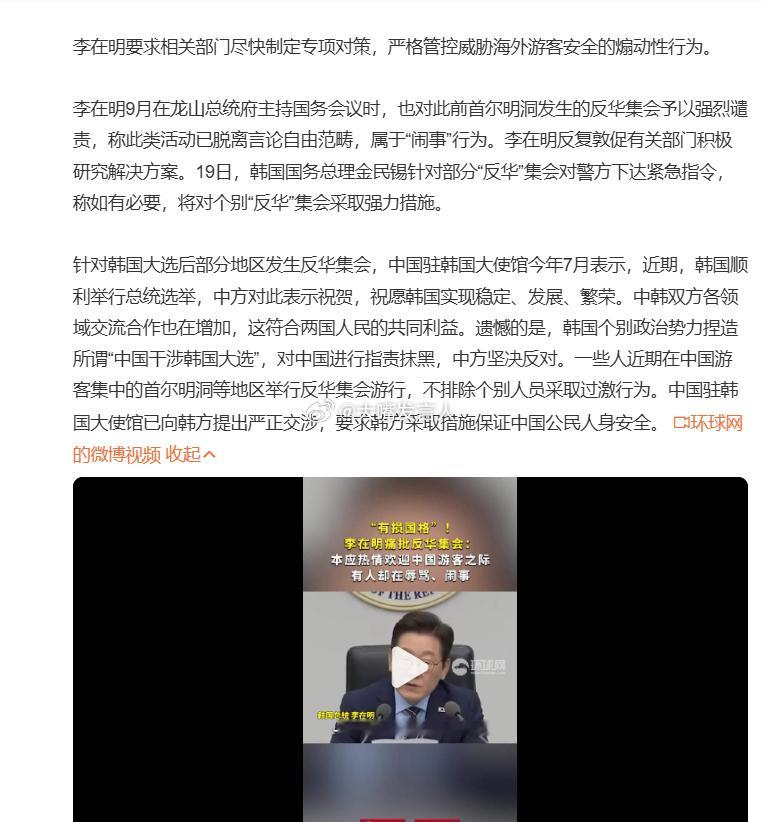 我驻韩使馆就反华游行表明严正立场,李在明痛批反华集会有损国格,热点观点