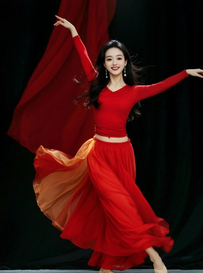 红裙旋舞韵如霞,一转身间绽芳华。似火身姿情未罢,翩跹美态醉千家。
