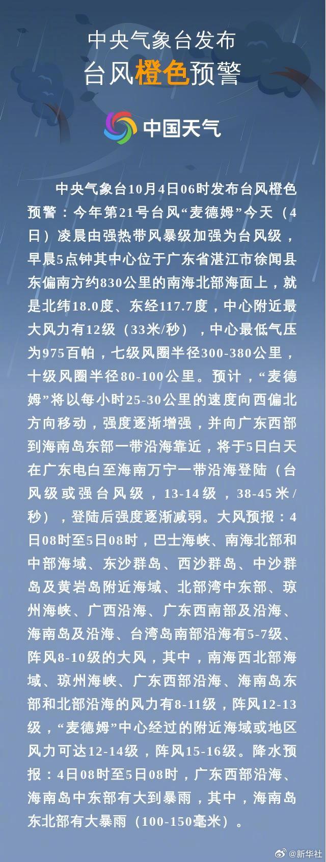 #台风橙色预警来了#【#麦德姆已进入台风24小时警戒线#】据,今天凌晨,台风“麦